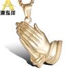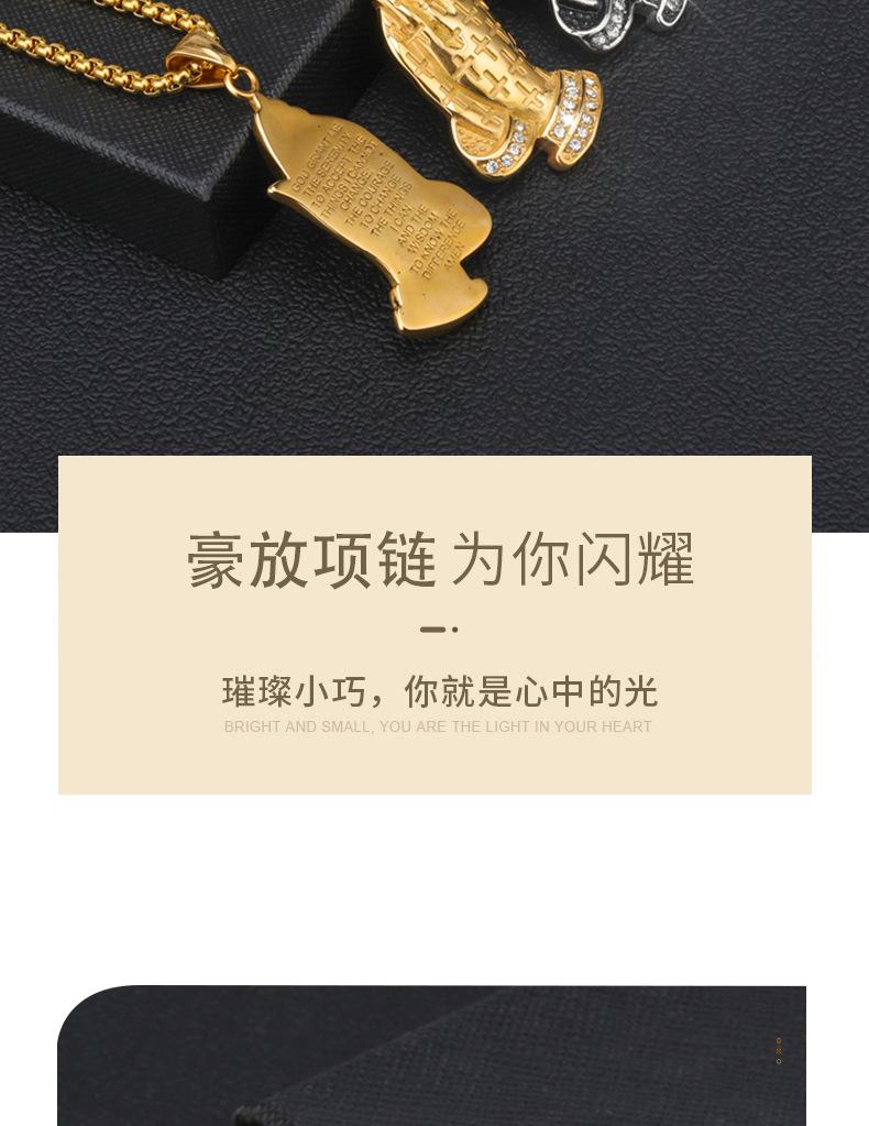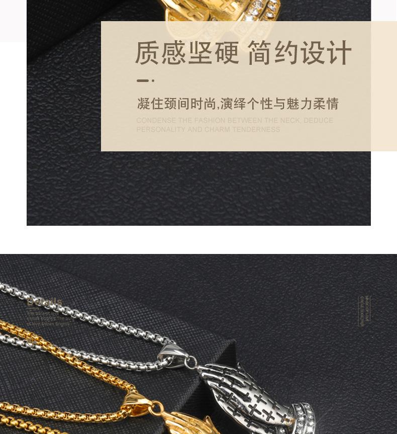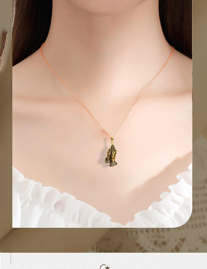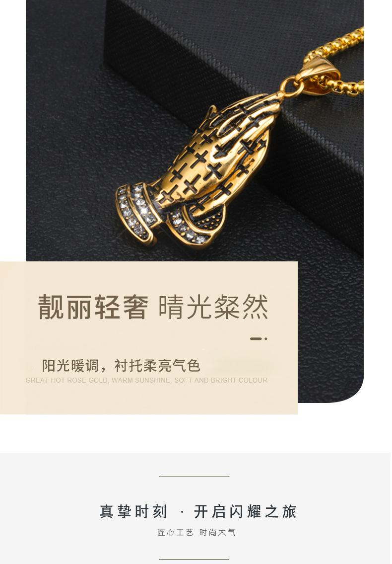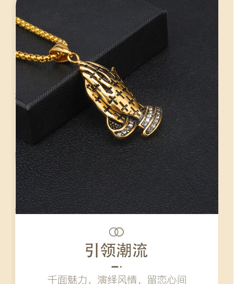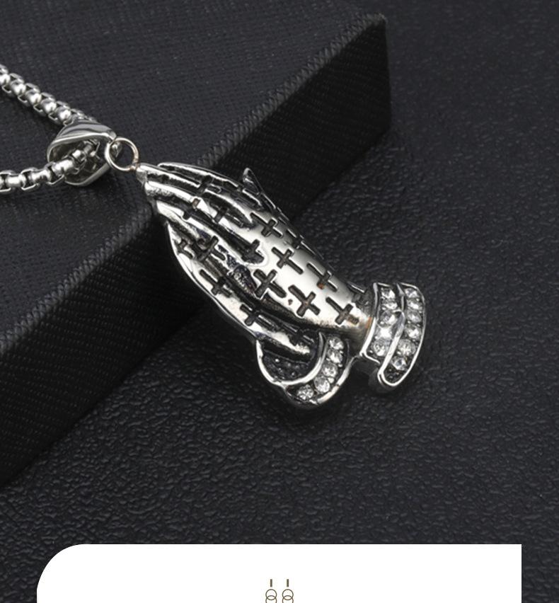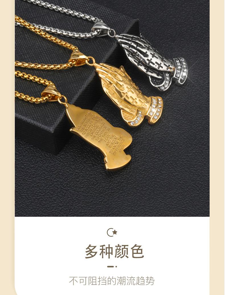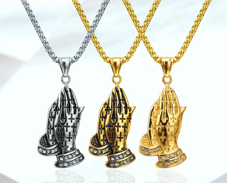 Escritura Religiosa Europea y Americana Joyería de Acero de Titanio Incrustada con Diamantes Estilo Retro Colgante de Mano de Oración Collar de Acero Inoxidable para Hombres y Mujeres