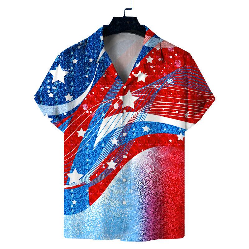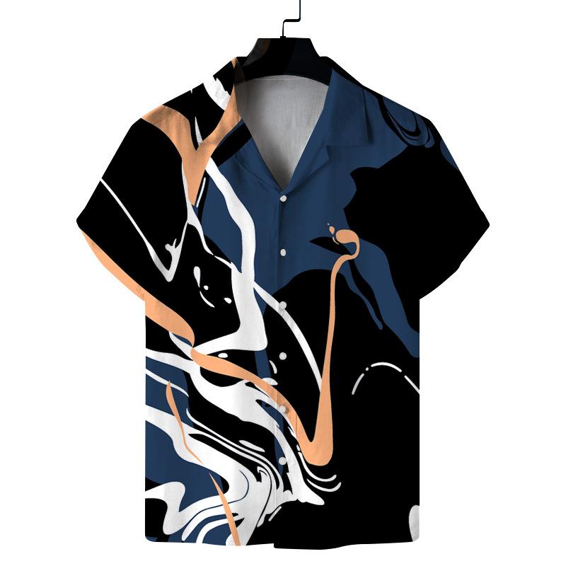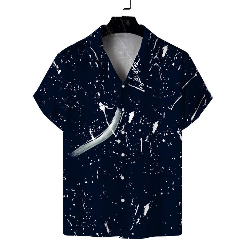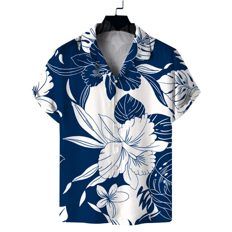 Comercio Exterior Primavera y Verano Nueva Camisa de Manga Corta Delgada para Hombre con Solapa Hawaiana y Cuello Cubano con Estampado Digital