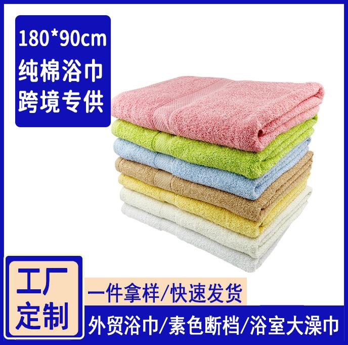 Toalla de baño de exportación transfronteriza Algodón puro 180*90 Toalla de baño extra grande engrosada Color liso Algodón roto Toalla de playa Personalización