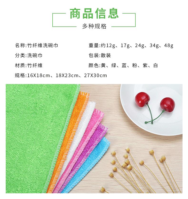 Paño de cocina de fibra de bambú de color sólido (naranja, verde, morado y azul)