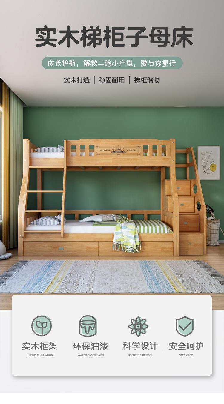 Cama alta y baja de madera maciza para adultos, cama doble para niños, cama doble para madres, cama alta y baja de dos capas
