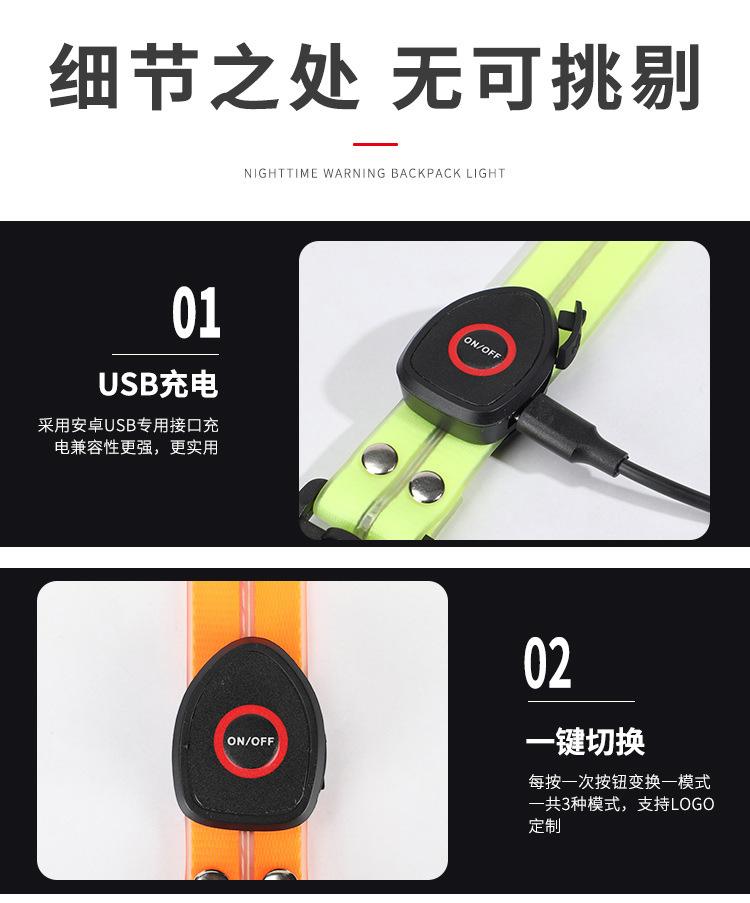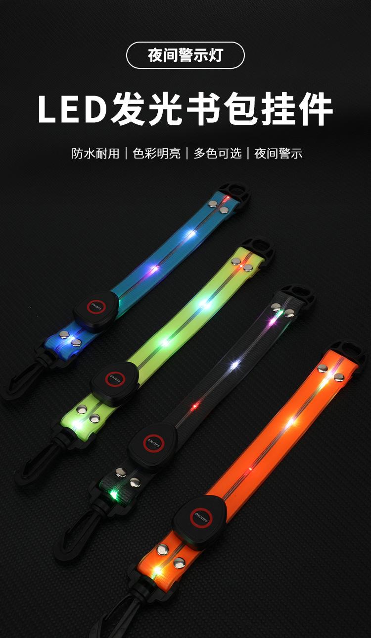 Colgante LED para mochila escolar, luz colgante de advertencia para ciclismo al aire libre, para correr de noche, carga USB, accesorios luminosos para bandolera