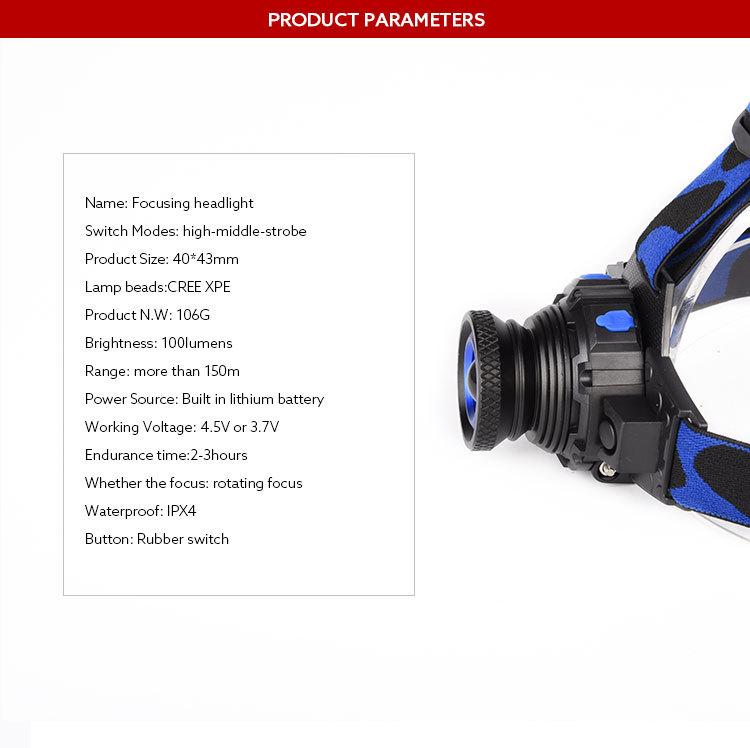 1. Perlas de lámpara: Perlas de lámpara XPE, fuerte capacidad de largo alcance, amplio rango de irradiación y larga duración de la batería;