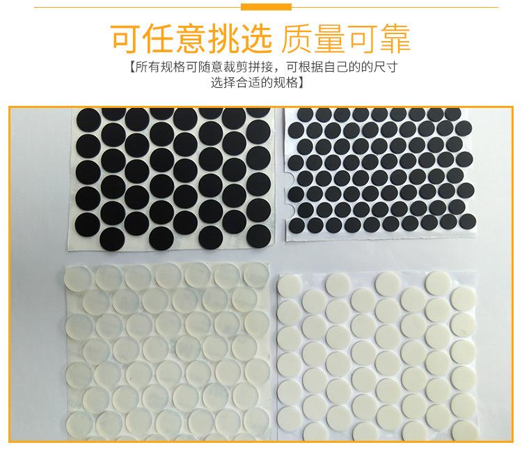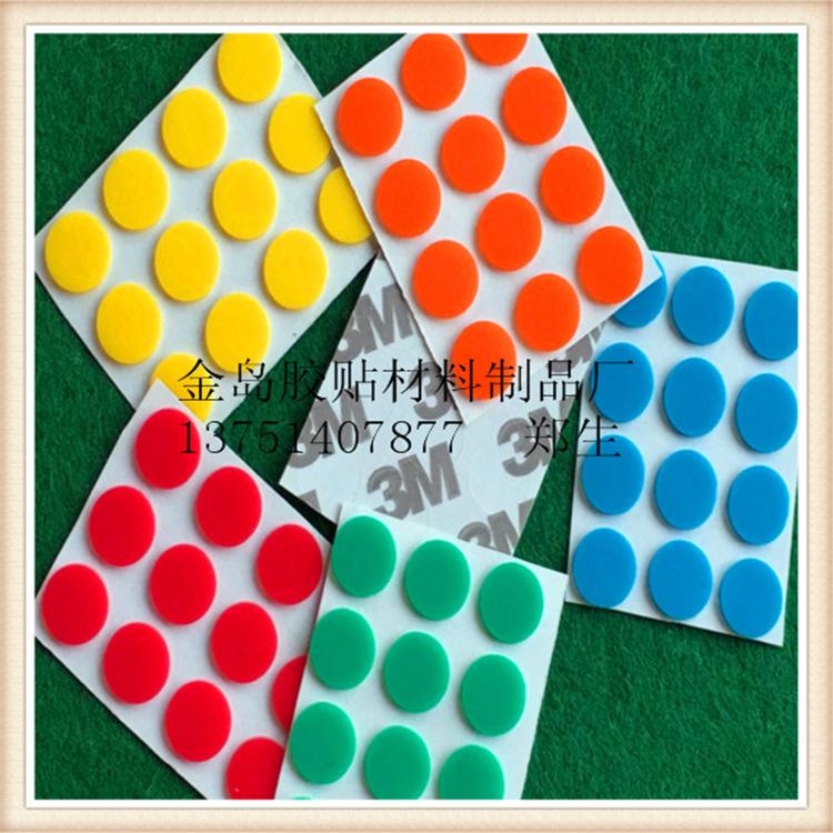 Las almohadillas de silicona se dividen en no adhesivas, de una o dos caras, con adhesivo de doble cara importado o adhesivo de doble cara nacional. Se pueden fluidizar y troquelar en cualquier forma, como redonda, hemisférica, cilíndrica, cuadrada, irregular, etc., según las necesidades del cliente. La silicona es suave y elástica, y se utiliza a menudo para proteger las piezas principales y evitar caídas accidentales o desgaste. Los diámetros más comunes son 8, 10, 12, 16 y 20 mm, y los espesores son 1, 1,5, 2, 2,5, 4, 5 y 6 mm. El margen de error es de ±0,1 mm.