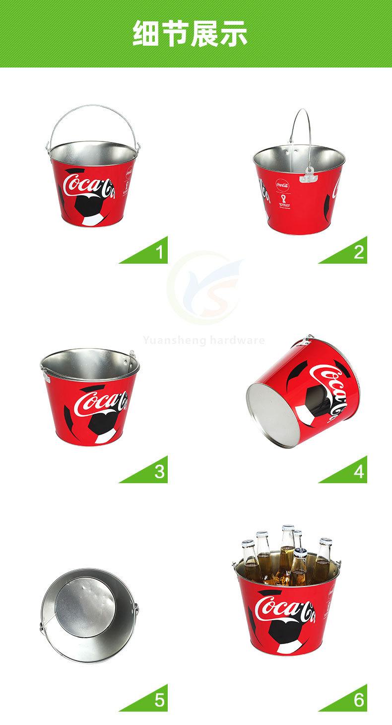 Venta directa de fábrica: cubo de hielo rojo de hierro galvanizado, cubo de cerveza de 5 l, cubo de hielo de hierro galvanizado de hojalata redonda de una sola oreja.