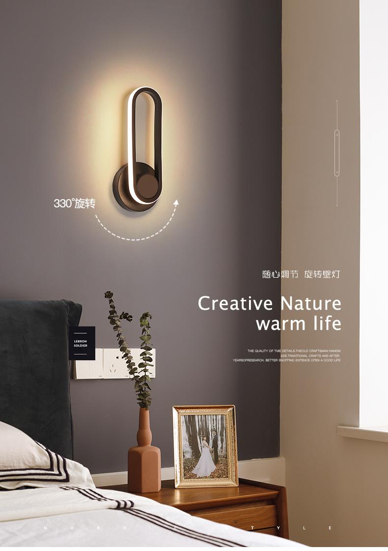 Lámpara de pared dormitorio mesita de noche lámpara LED moderna minimalista escalera sala de estar pared de fondo lámpara de pared giratoria pasillo lámpara de pared