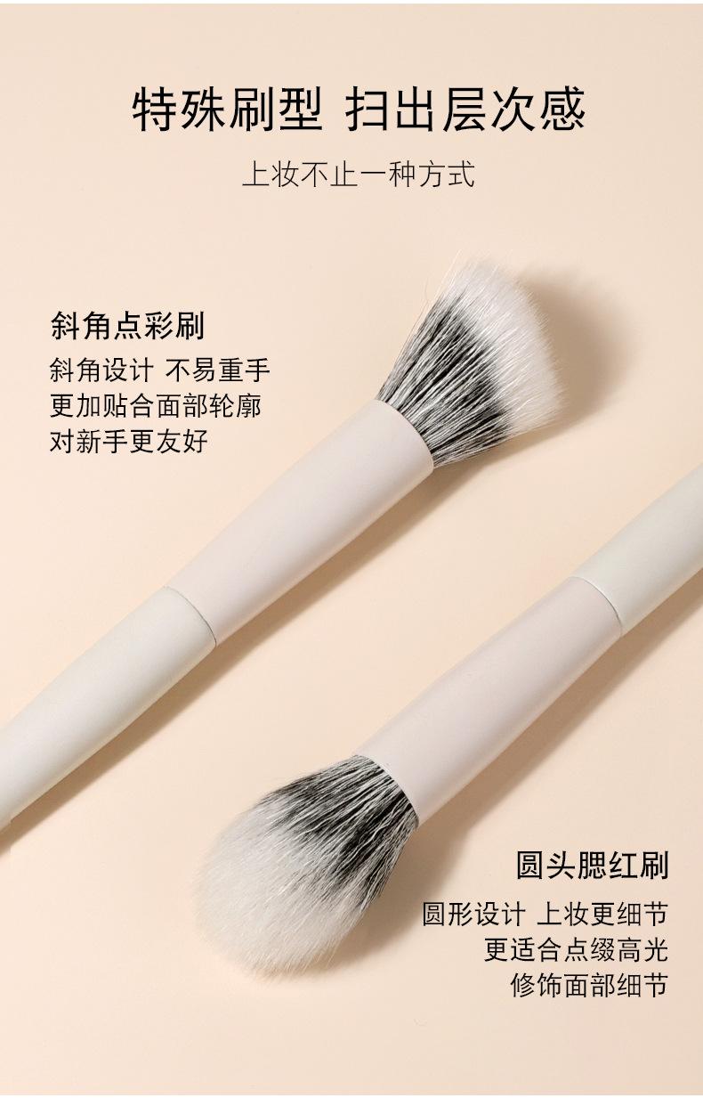 Brocha para rubor de punto de color de porcelana de nube, doble lana, pelo de animal, polvo, cabeza oblicua, brocha para rubor esponjosa, brocha de maquillaje local de alto brillo