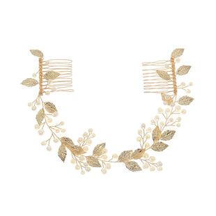 Nuevos accesorios de boda de Amazon: peine de perlas hecho a mano, peine largo de hoja de oro hecho a mano, tocado de novia