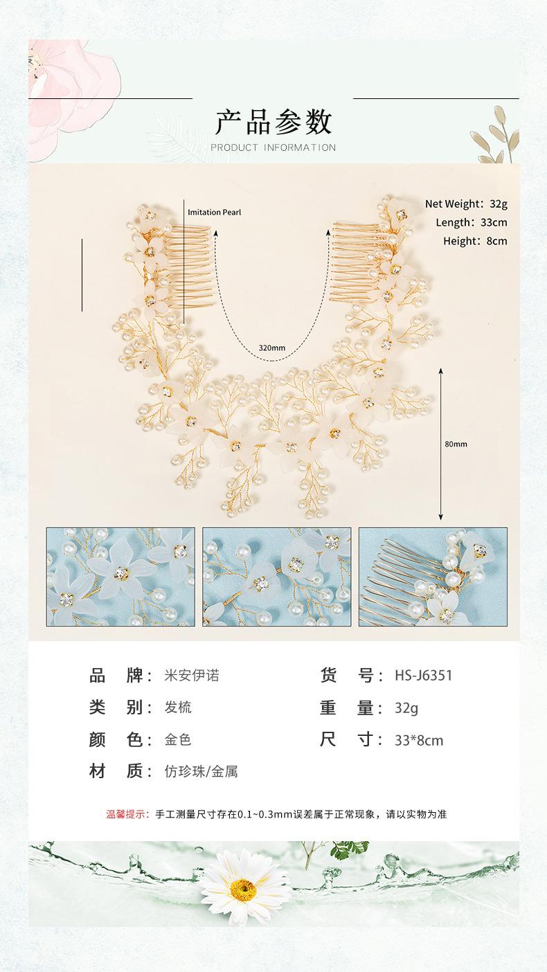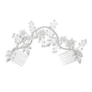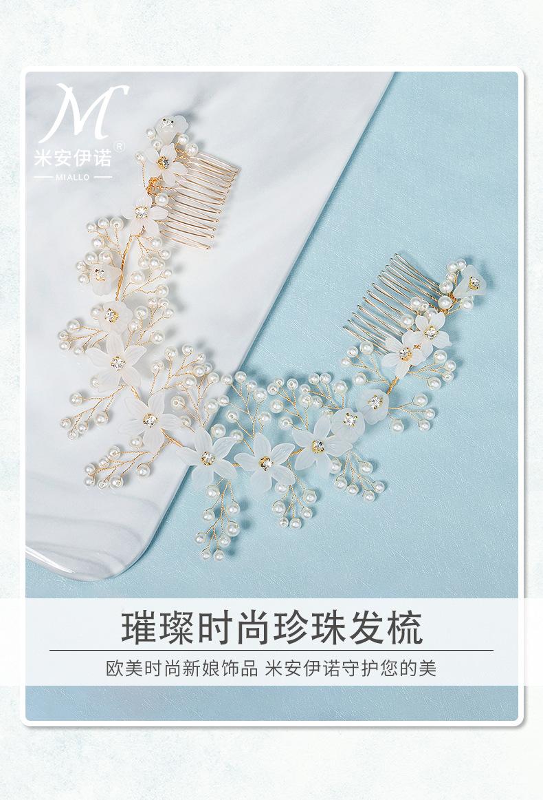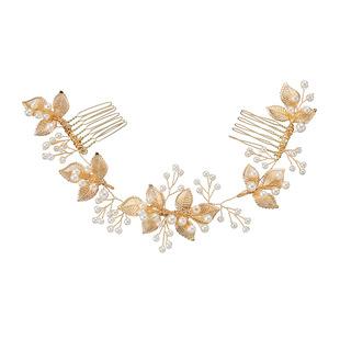 Nueva joyería transfronteriza europea y americana hecha a mano aleación con baño delgado flor inserción de perlas tocado de boda peine para el cabello accesorios para el cabello
