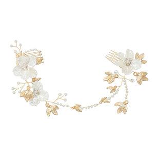 Suministro transfronterizo en eBay, gran venta, peineta de flores de concha hecha a mano europea y americana para novia, peineta de perlas y diamantes de imitación, tocado de boda