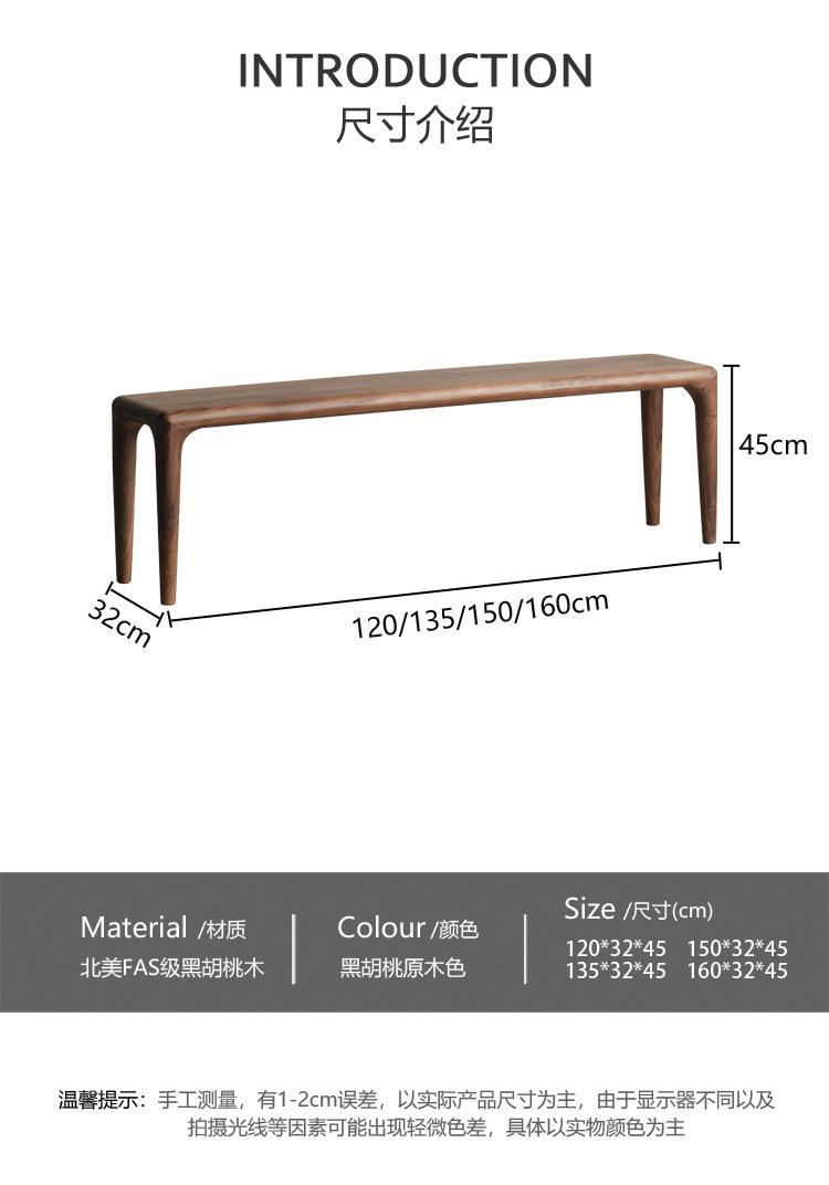 Banco nórdico de nogal negro, moderno y minimalista, de madera de cerezo japonés, para el hogar, de madera maciza, banco largo, taburete para cambiar zapatos