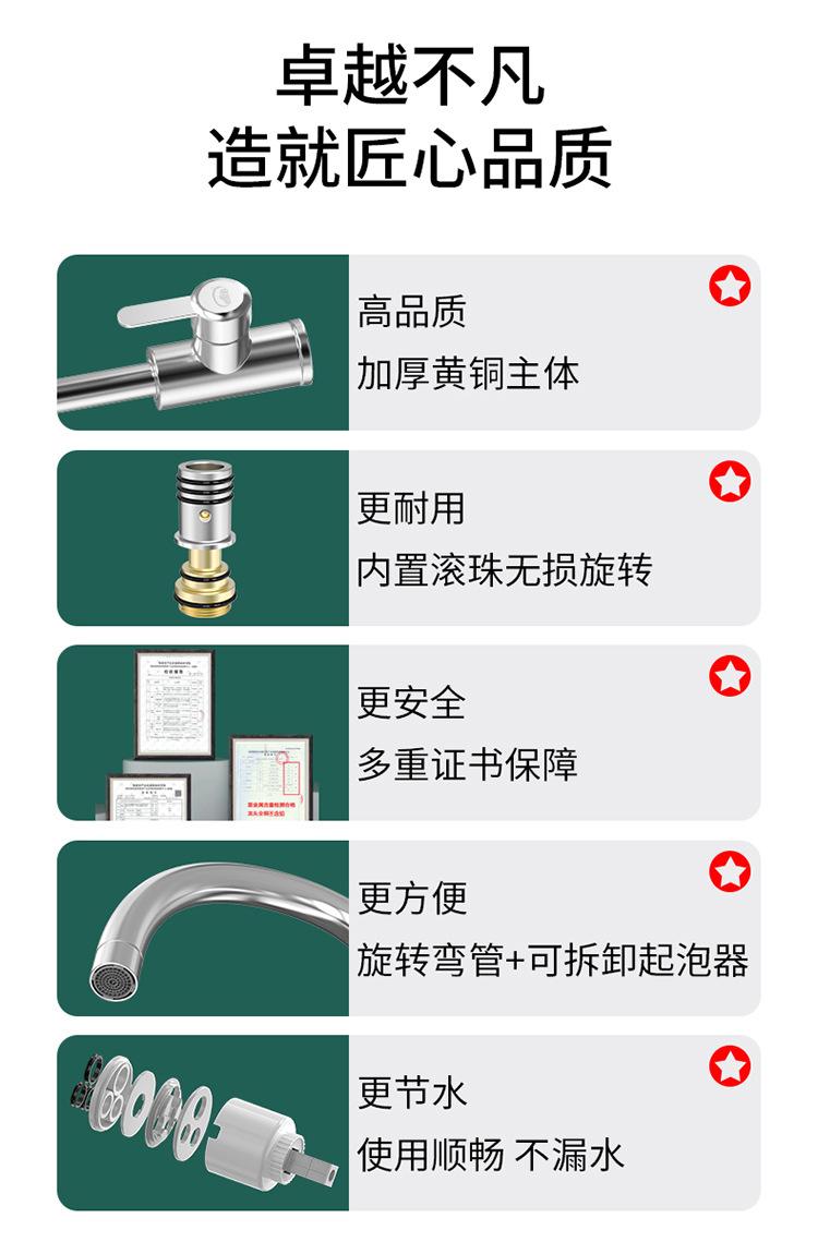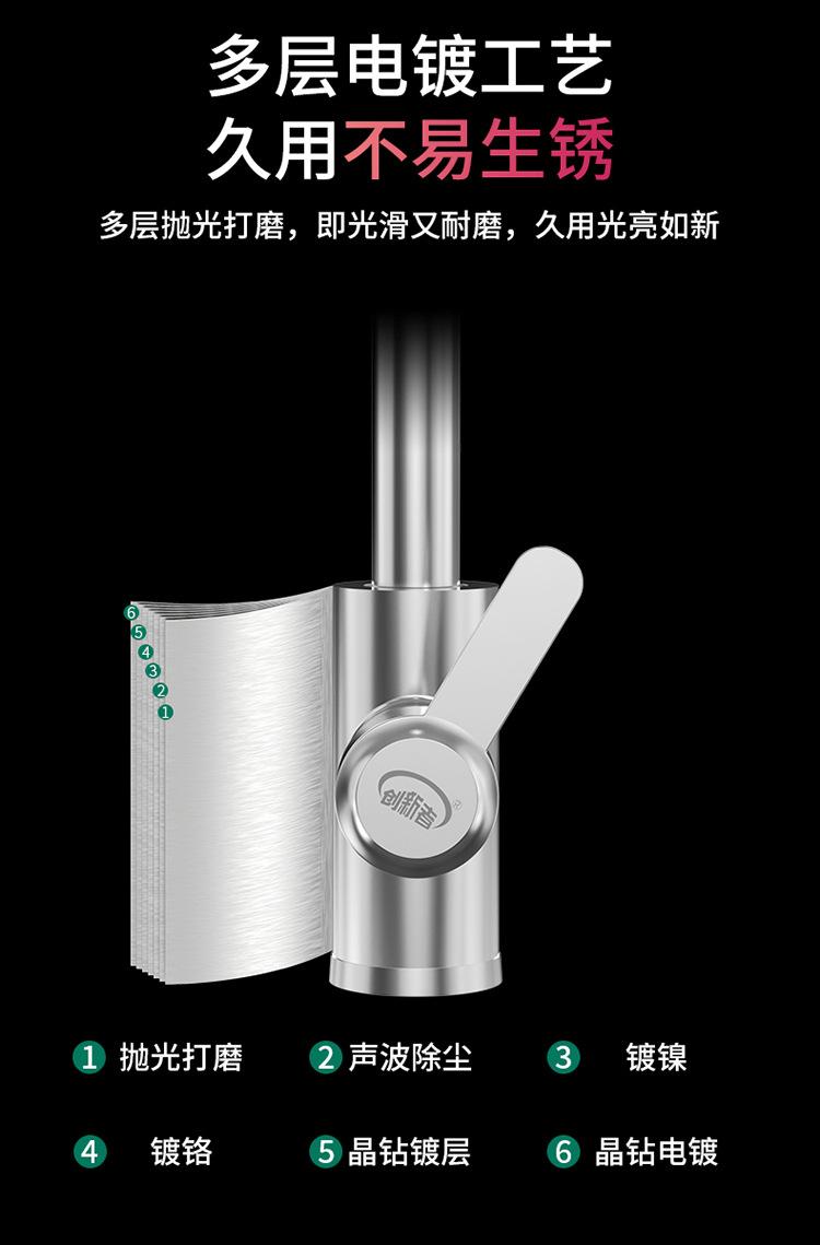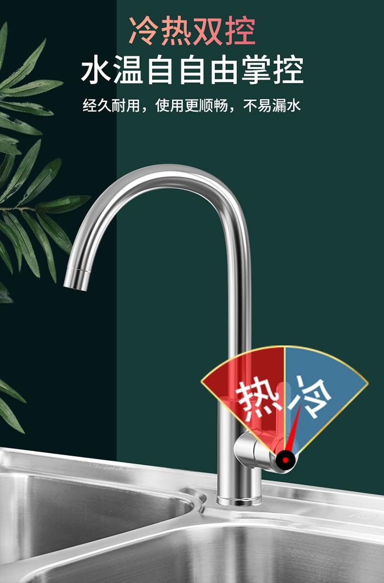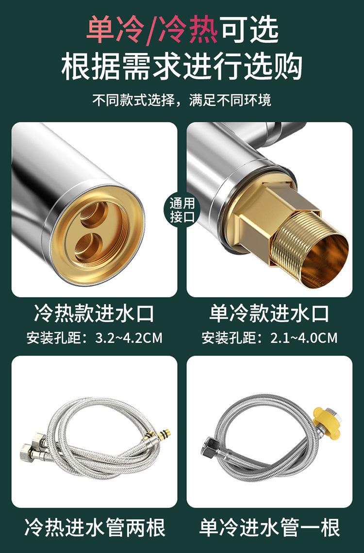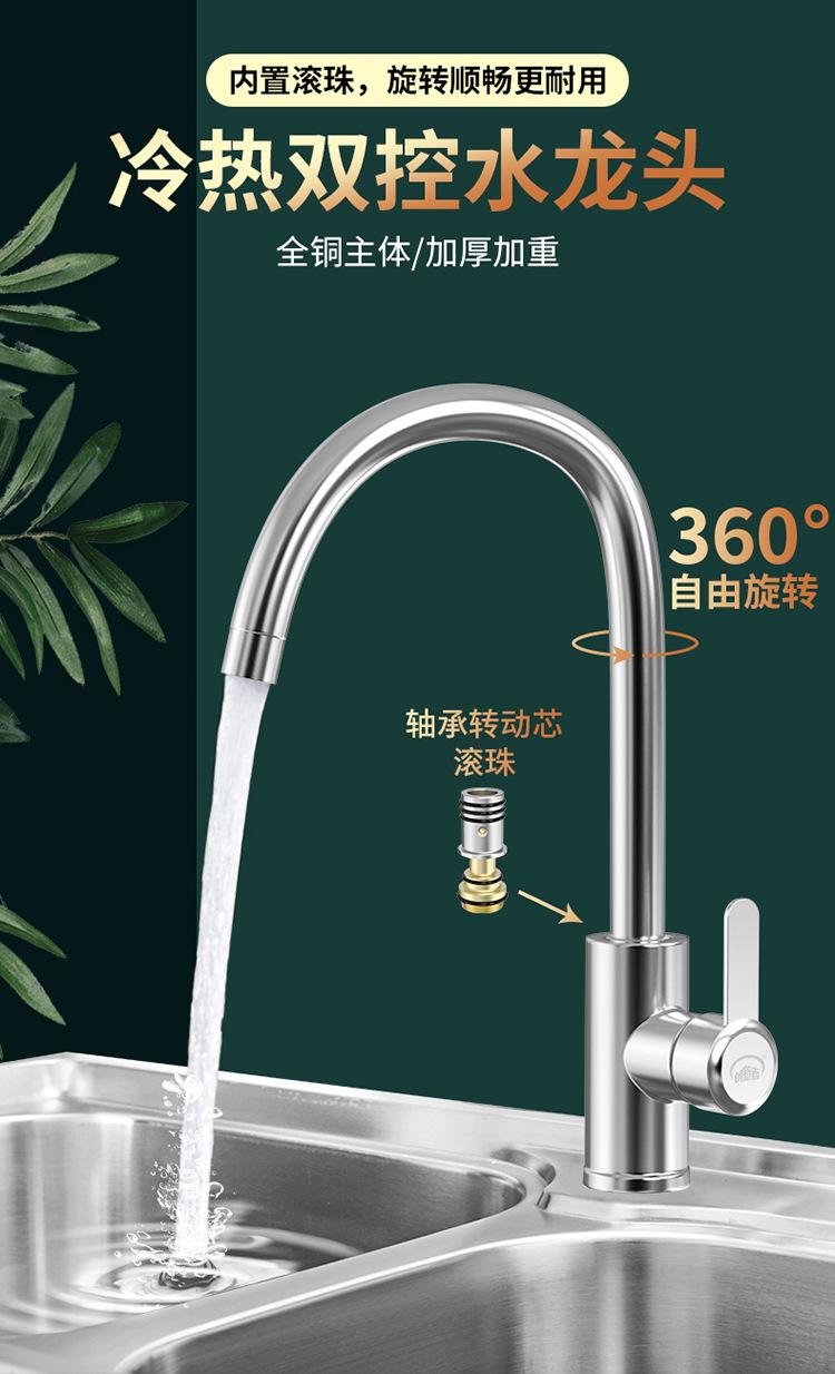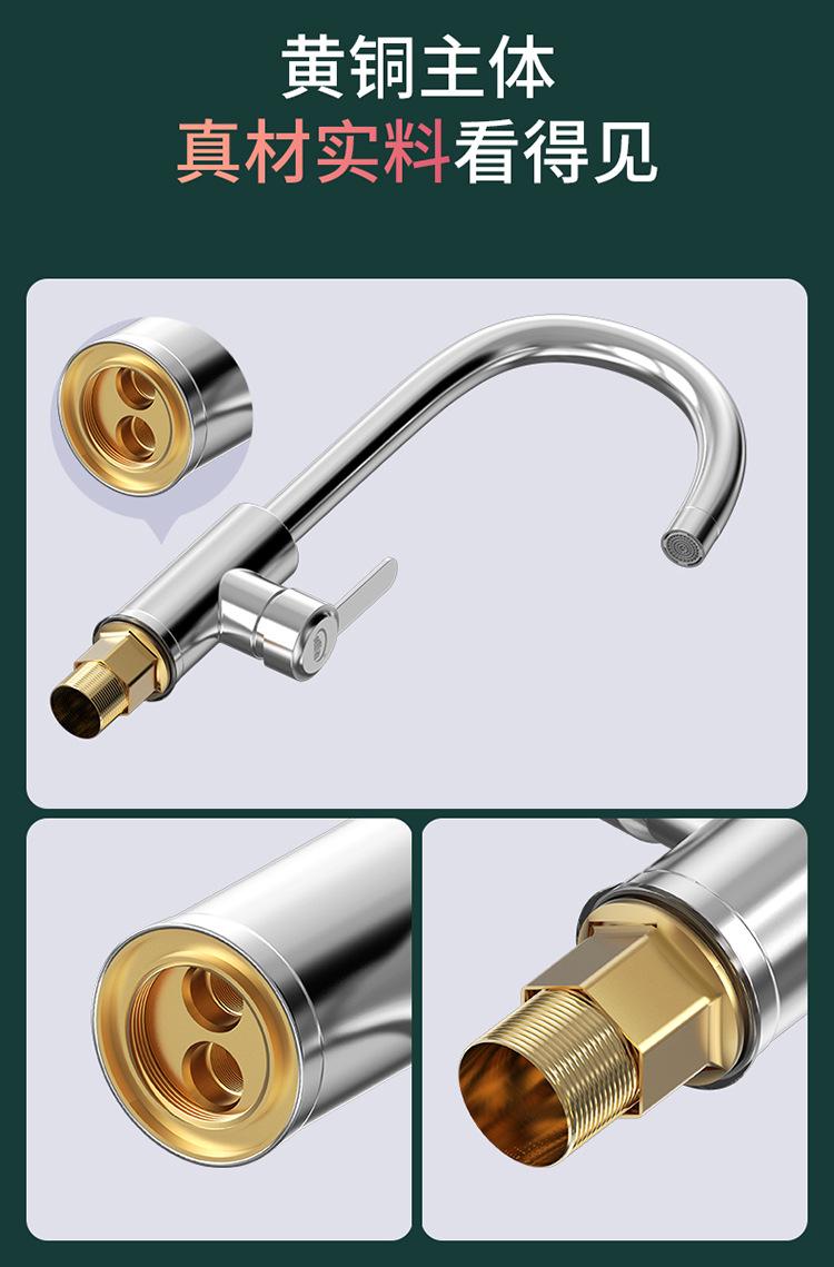 Grifo de cocina, fregadero de agua caliente y fría, fregadero de cobre, grifo giratorio de un solo grifo de acero inoxidable para el hogar, grifo universal