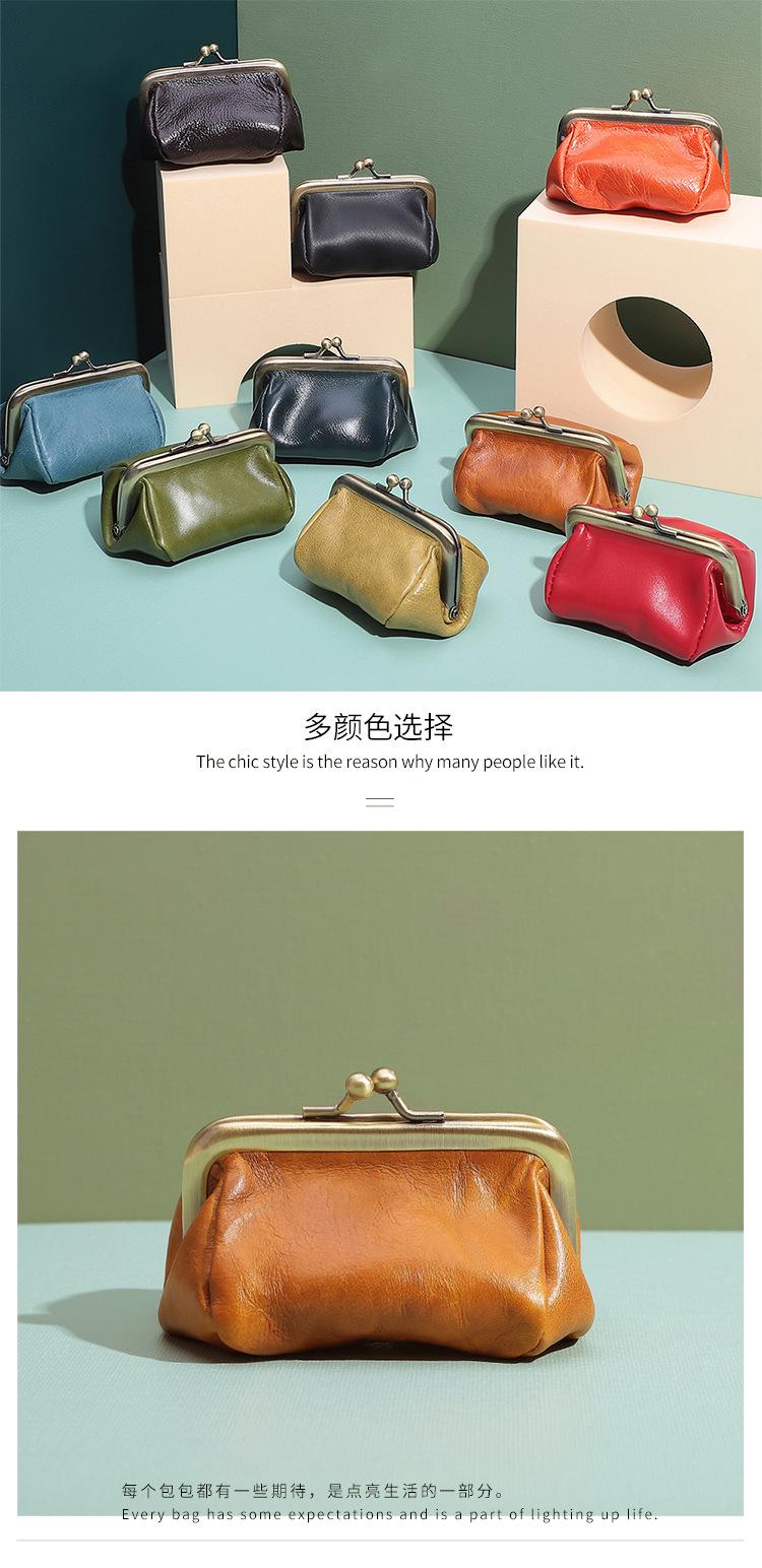 Compra Nuevo monedero vintage creativo mini con boca de almacenamiento dorada, bolso japonés hecho a mano de cuero genuino, monedero de piel de vaca, bolso para auriculares al por mayor en Joom.pro