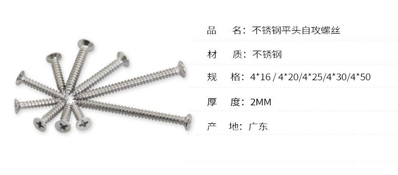 Tornillo de acero inoxidable Meiboxi, tornillo autorroscante de cabeza plana con ranura en cruz, tornillo autorroscante, tornillo autorroscante de cabeza avellanada, M4 * 16 30