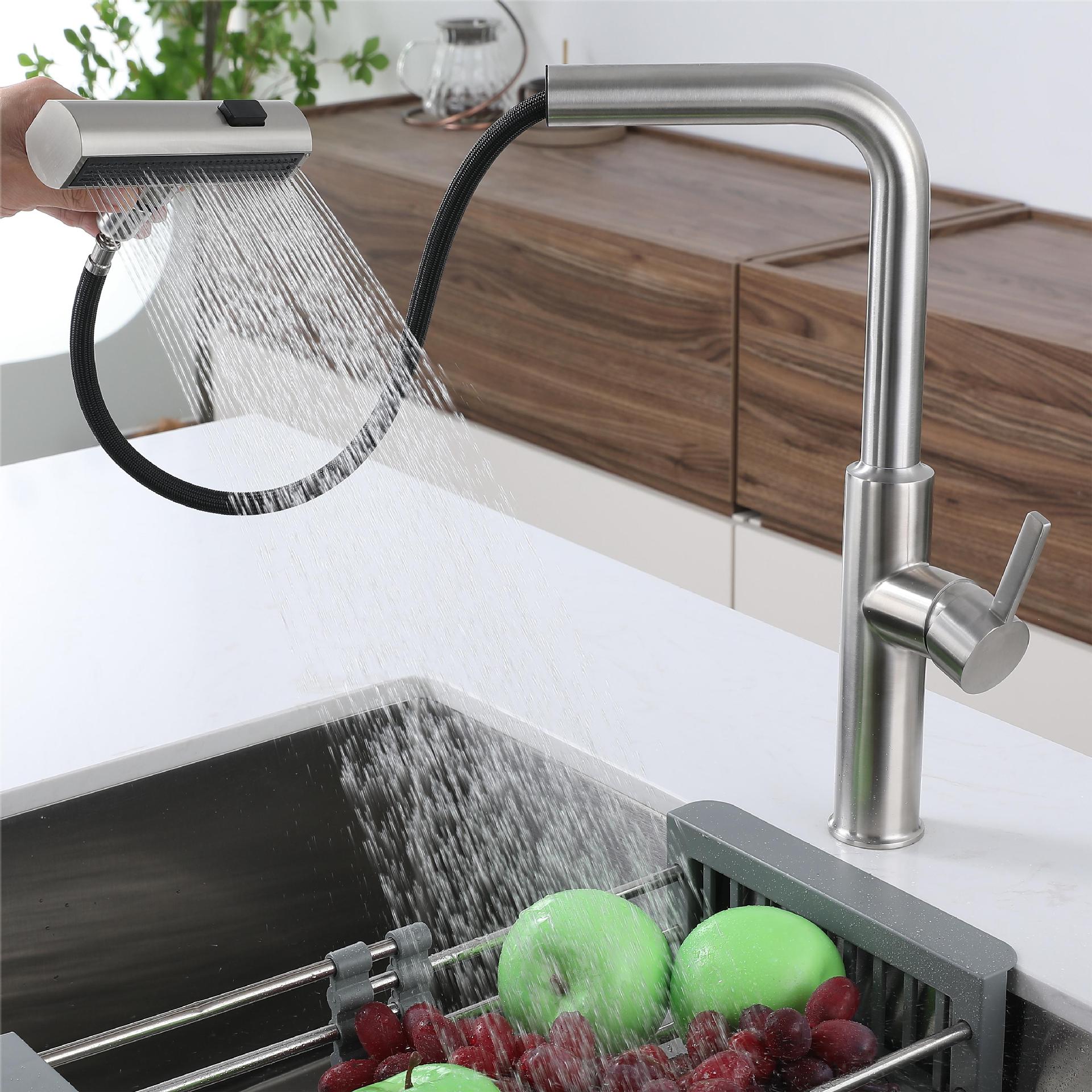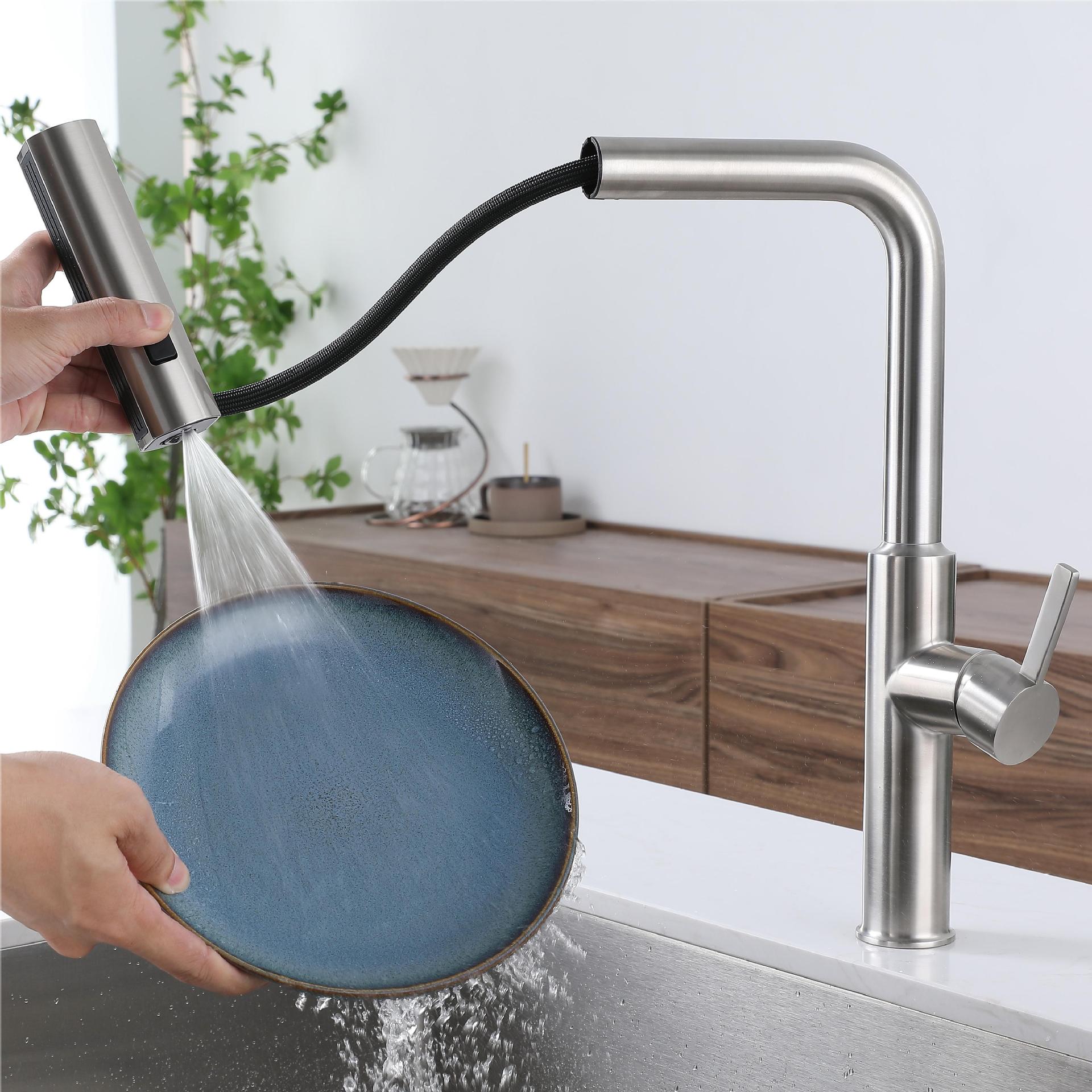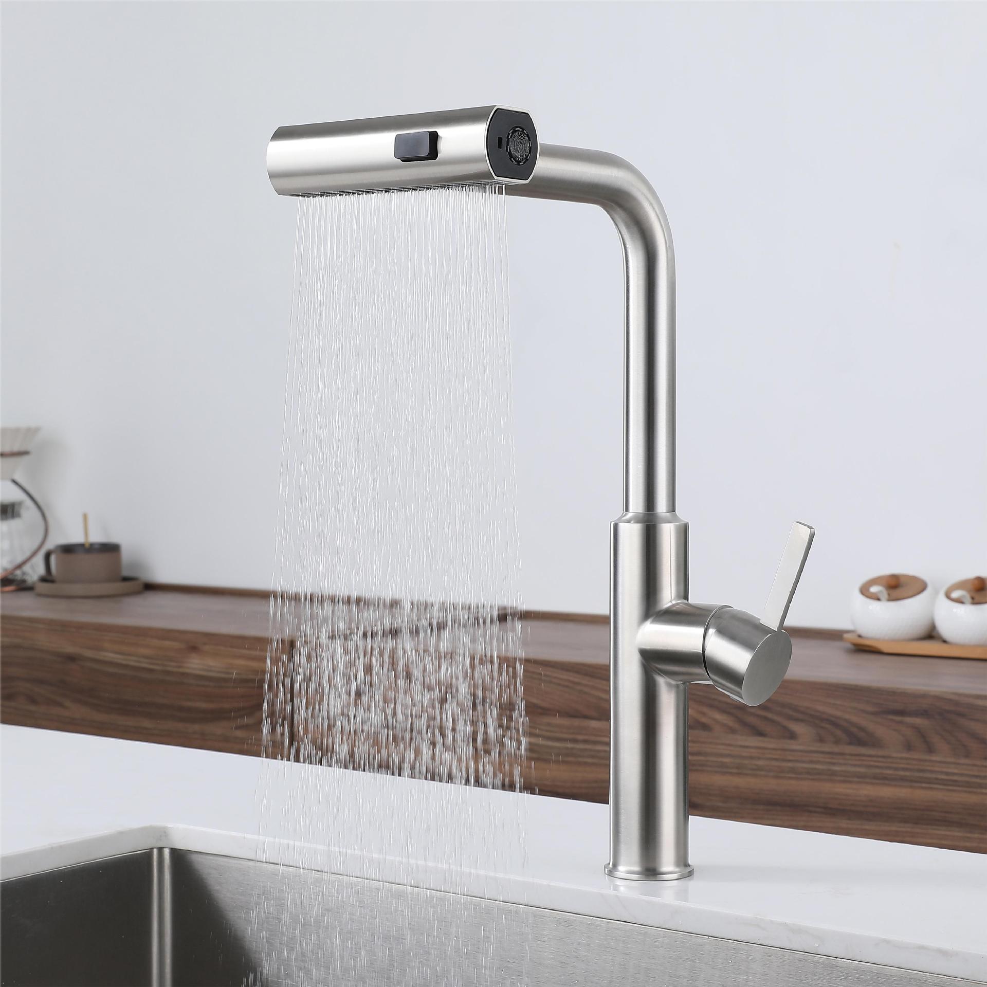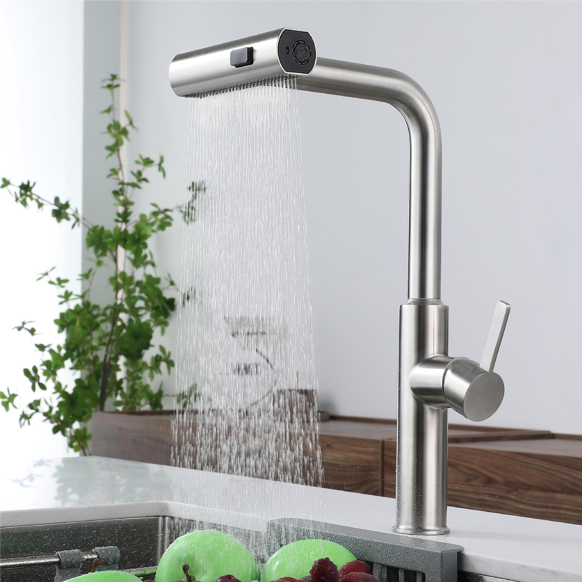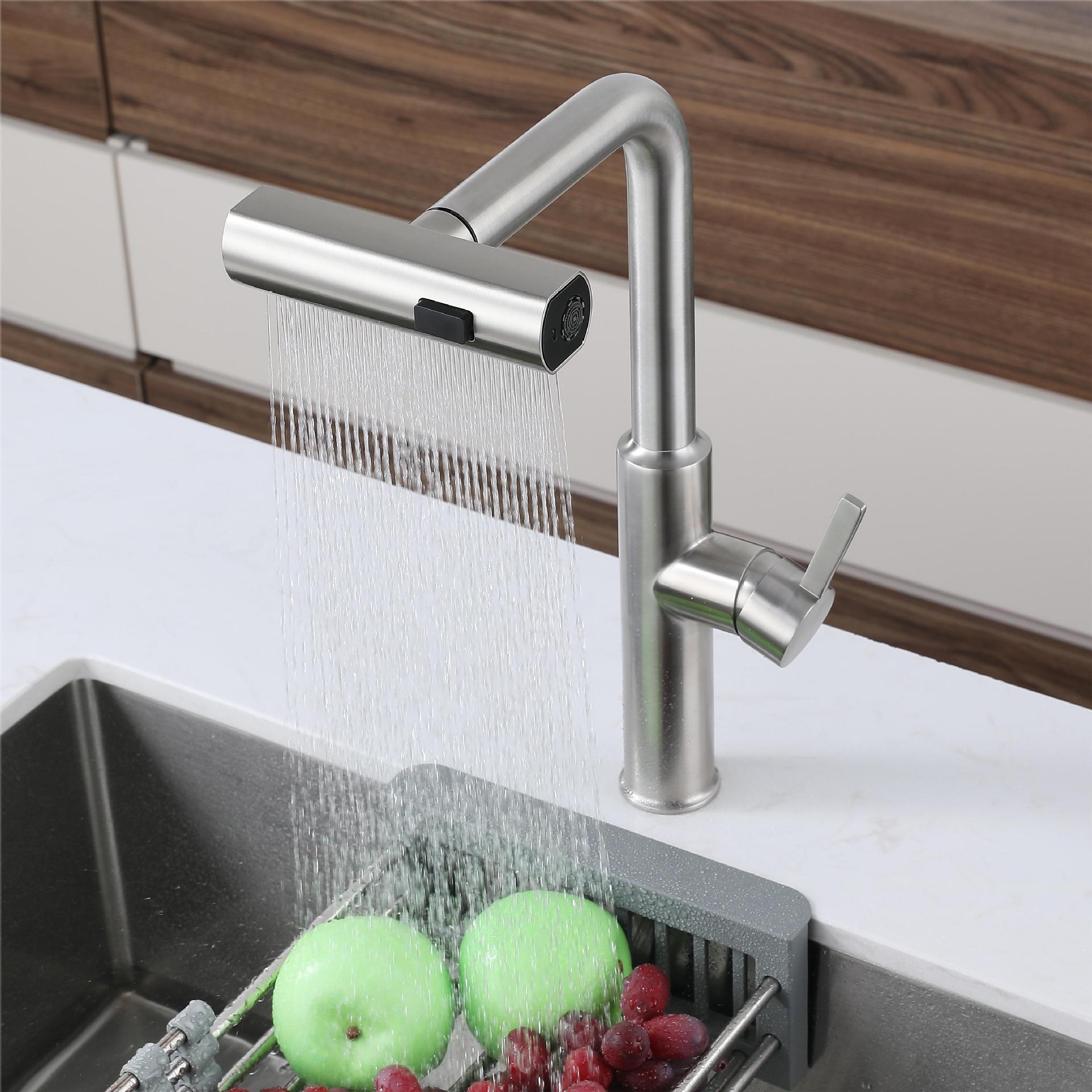 Grifo de cocina de acero inoxidable SUS304 con cascada de lluvia, para lavabo, fregadero, grifo de agua caliente y fría, color rojo