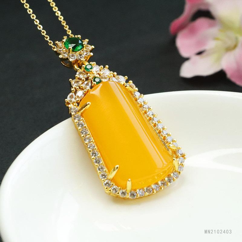 Huang Chalcedony Trapezoidal No Matter Pendant Oversized Green Treasure (MN2102403)28-17mm (Including Alloy Chain)
