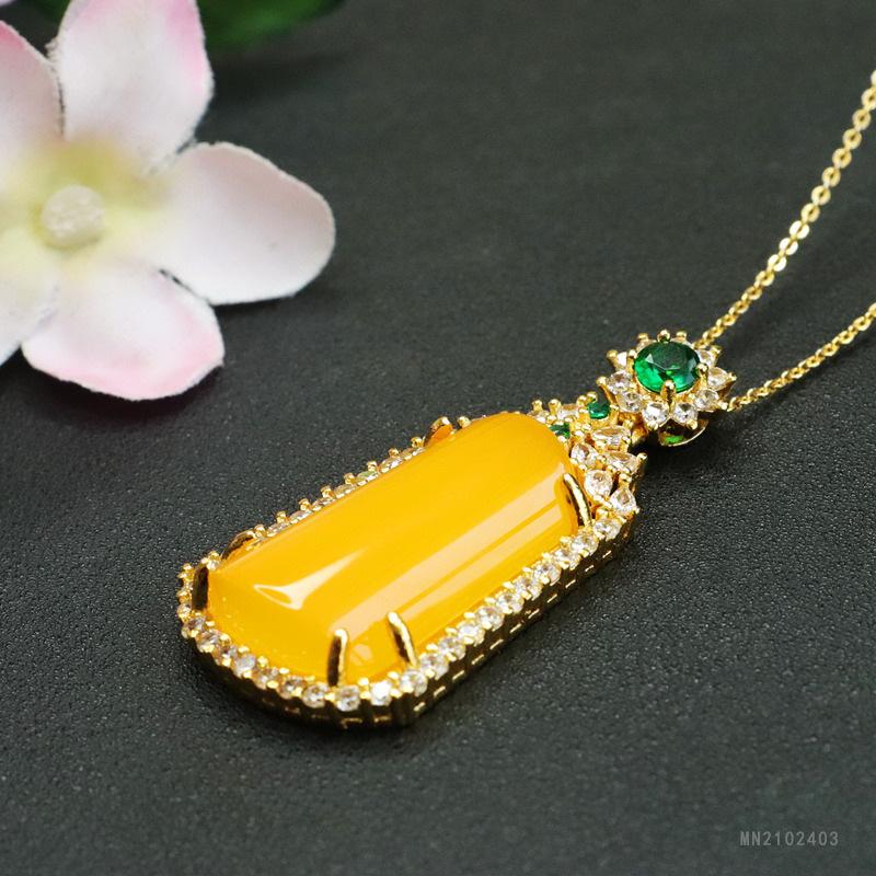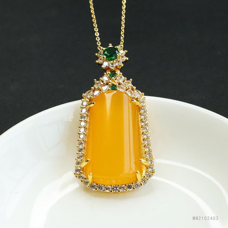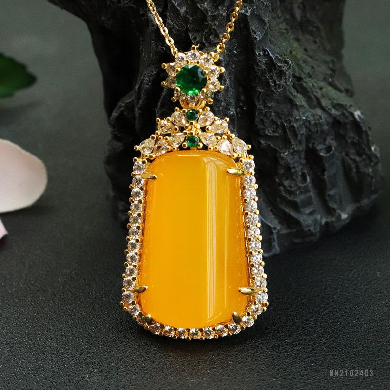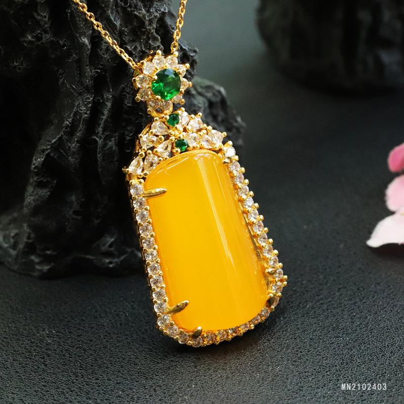 Huang Chalcedony Trapezoidal No-Thing Pendant Oversized Green Treasure (MN2102403)28-17mm (excluding chain)