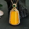Huang Chalcedony Trapezoidal No-Thing Pendant Oversized Green Treasure (MN2102403)28-17mm (excluding chain), H...