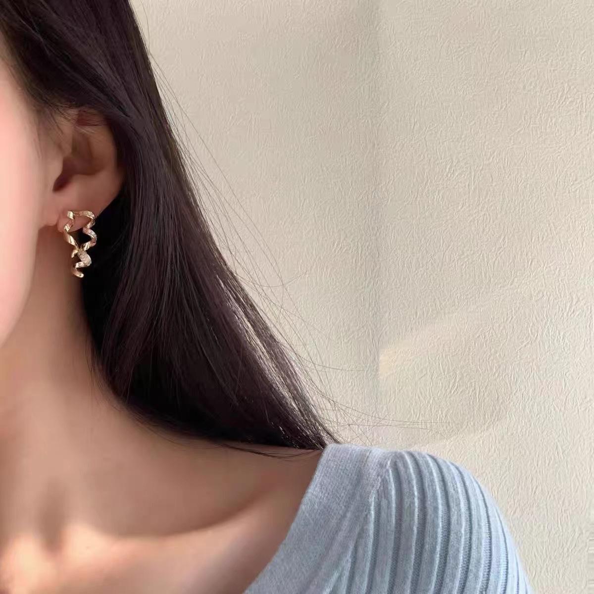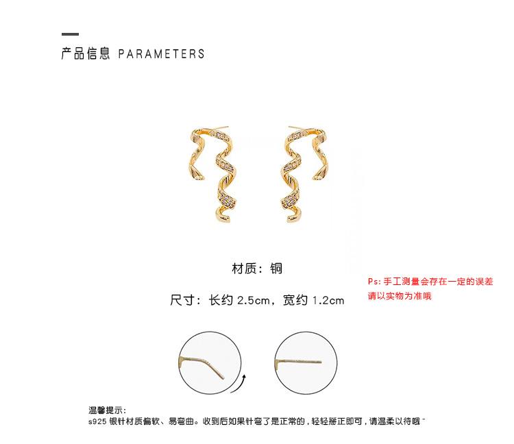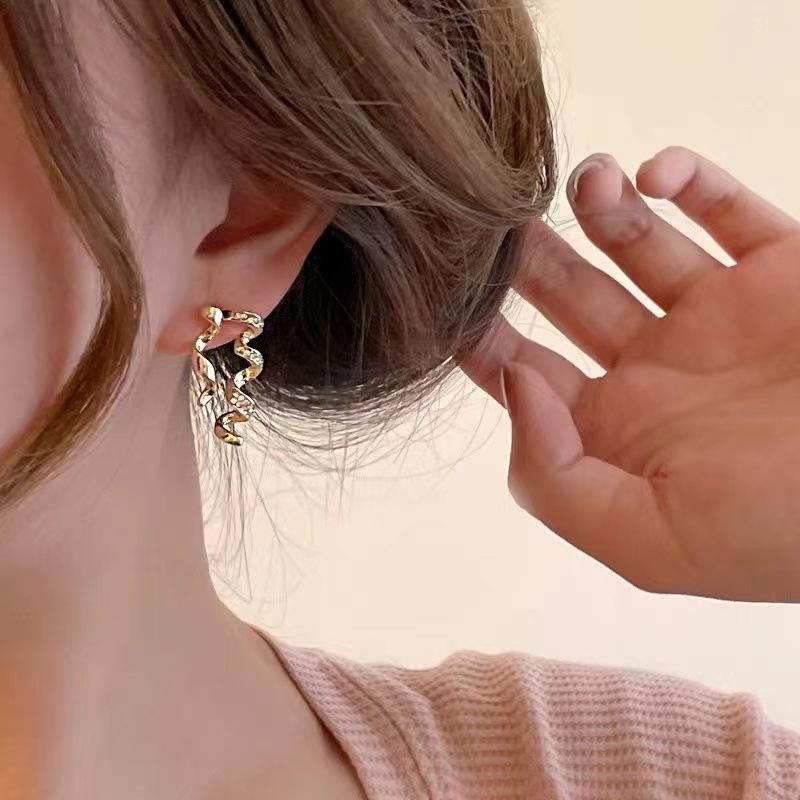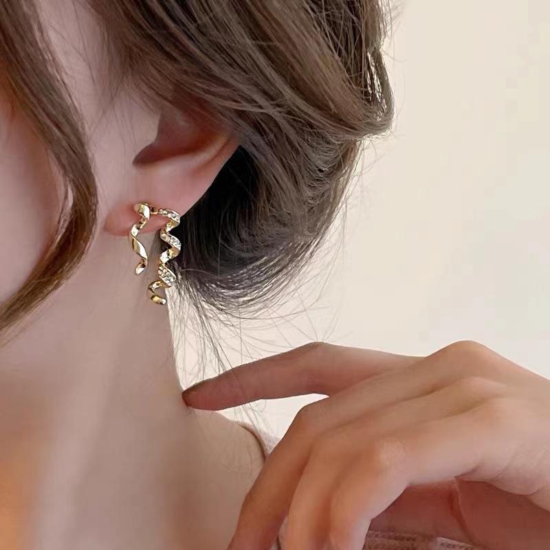 Pendientes de espiral de circonitas microincrustadas de metal estilo europeo y americano para mujer, nuevos y elegantes pendientes de celebridades de Internet coreanas de moda 2023.