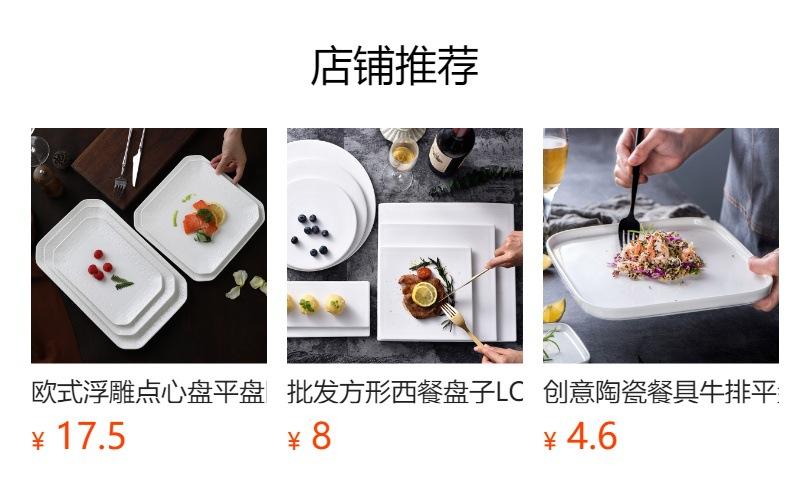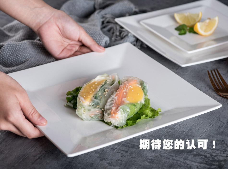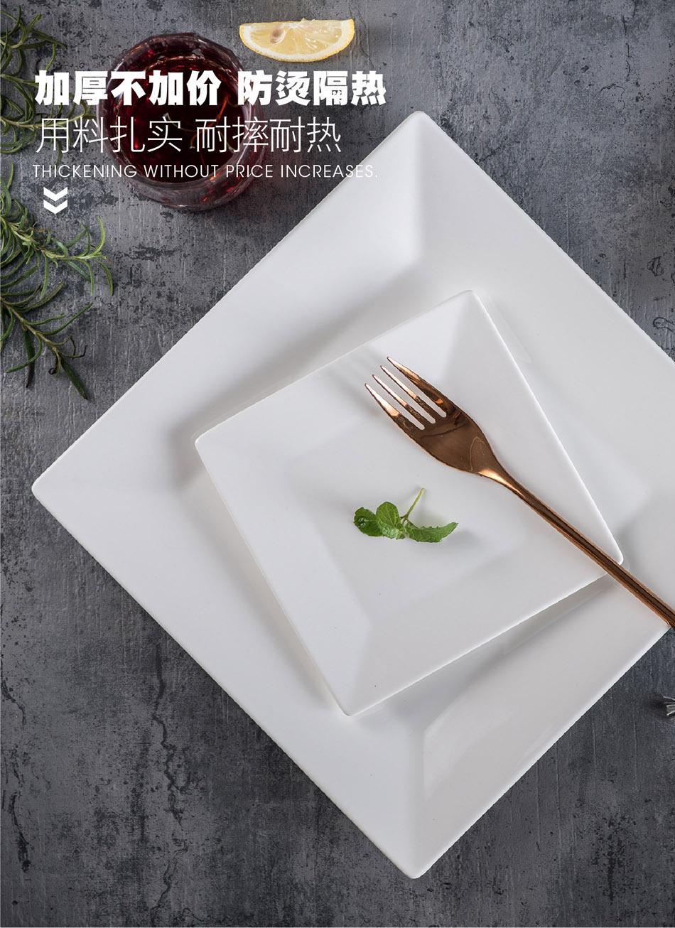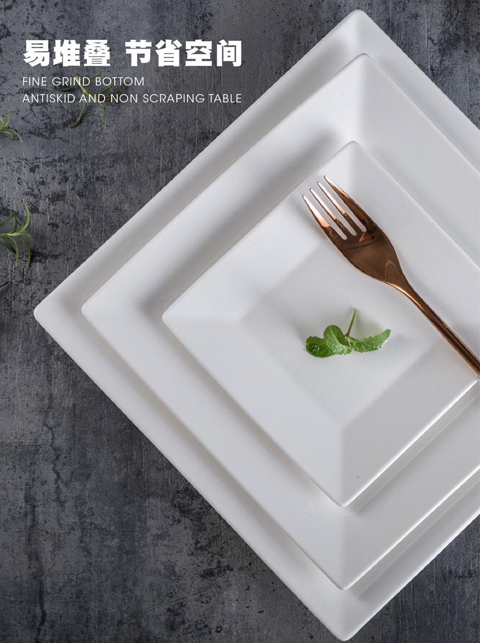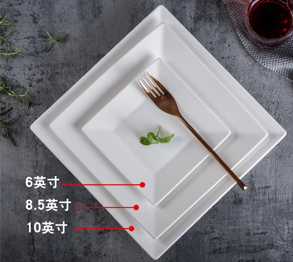 Plato cuadrado de cerámica simple creativo para el hogar Blanco sushi bistec pasta plato occidental plato europeo de hotel se puede hacer