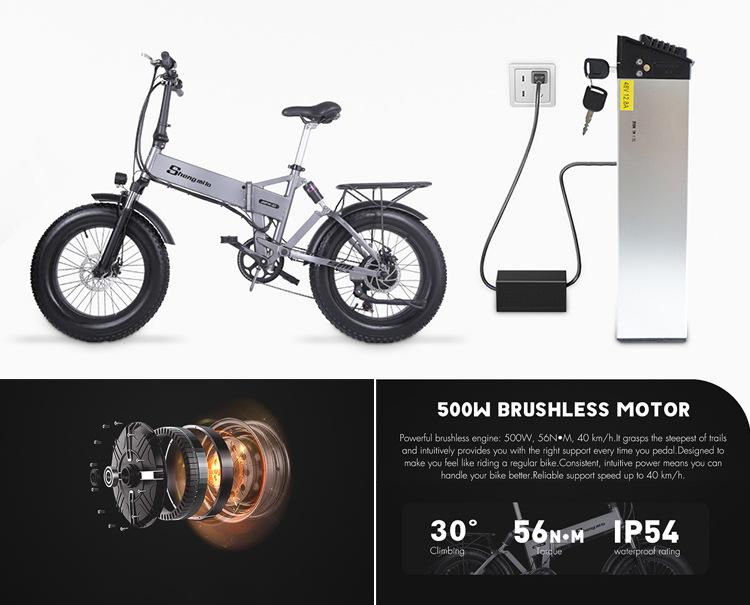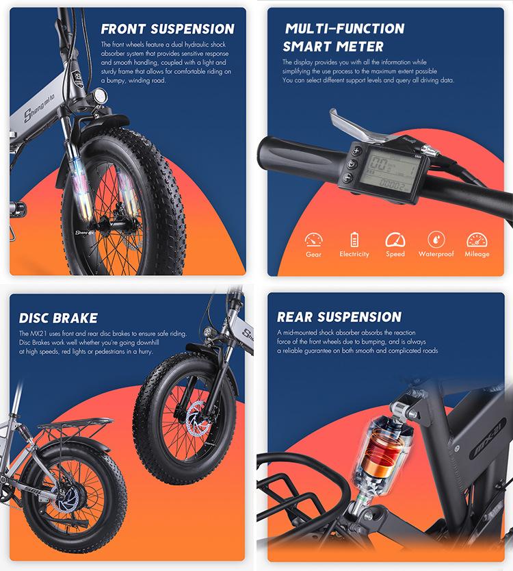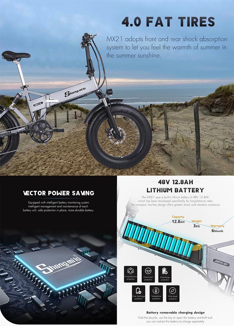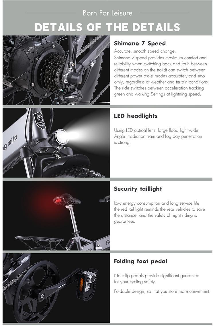 Bicicleta Eléctrica Plegable Saint Milo de 20 Pulgadas 1000W Alta Potencia 12.8Ah Gran Capacidad para Conducir