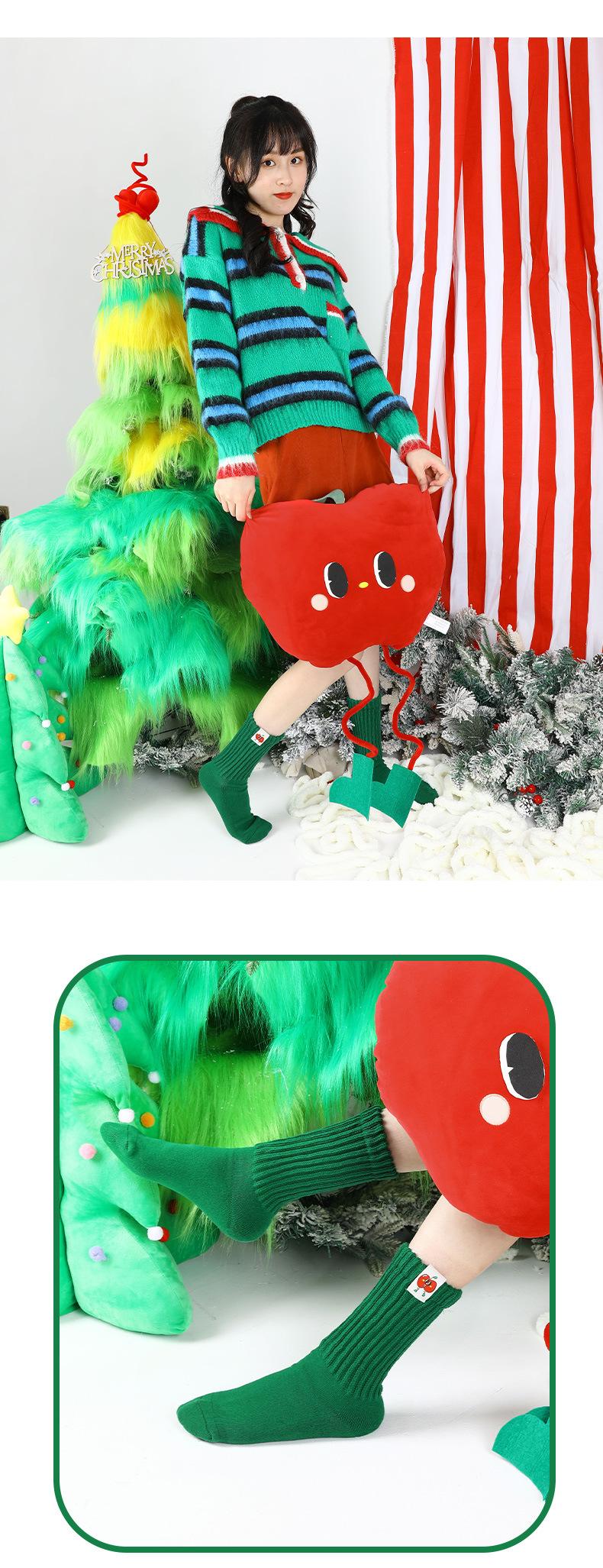 Manzana Navideña:Los calcetines están hechos de felpa y pesan 80 g. Son muy gruesos y se pueden usar en capas. La etiqueta tejida está cosida en los puños.