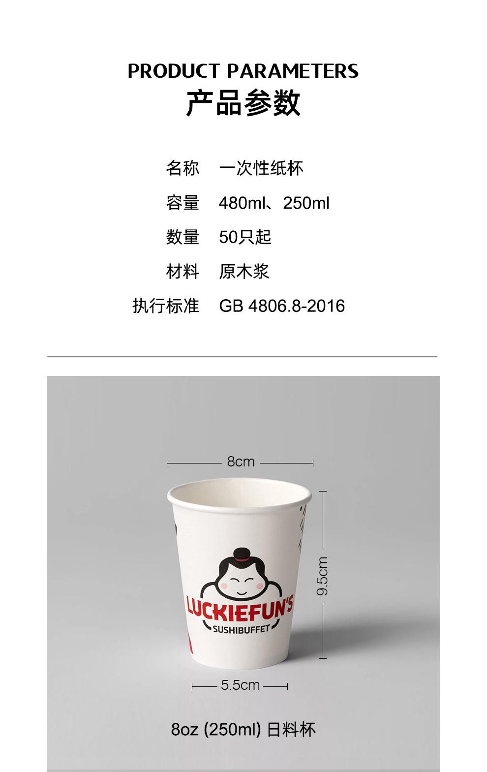 8oz single-layer paper cup without lid 50, 8oz single-layer paper cup with lid 50