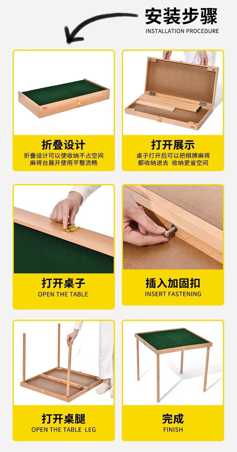 50*50 solid wood high-legged mahjong table + mahjong + chess
