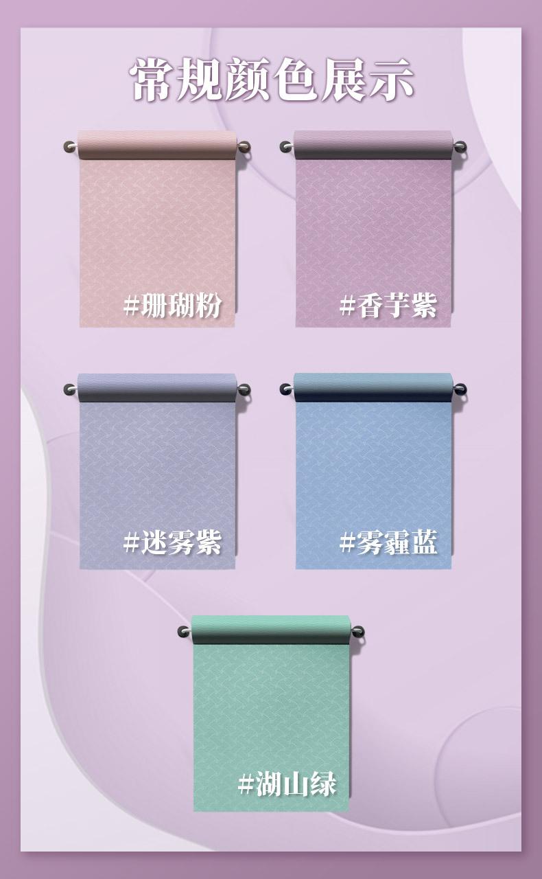 Coral pink, Taro purple, Lake and mountain green, Misty purple, Haze blue