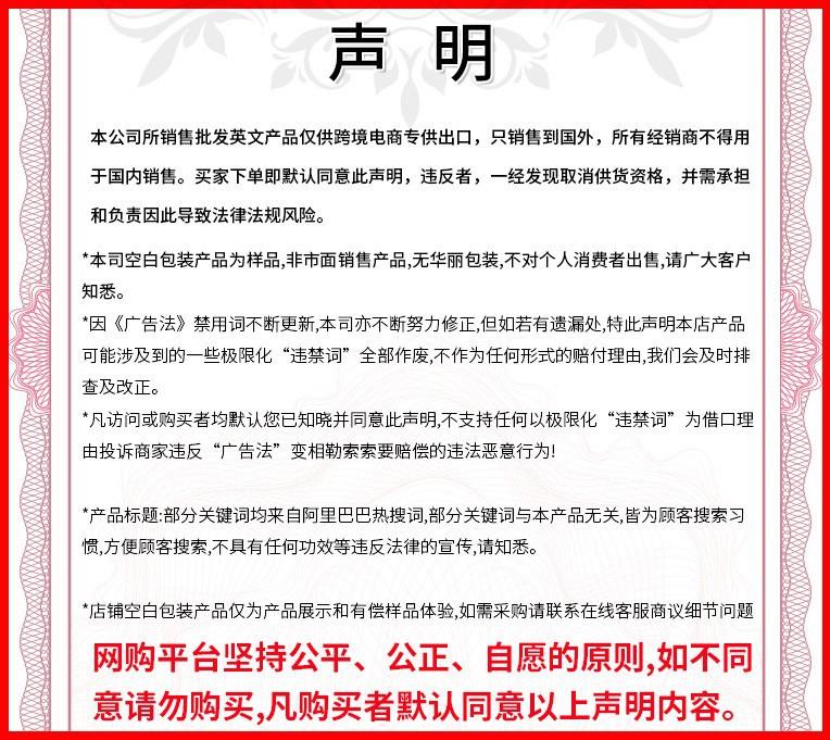 Este producto es solo para comercio transfronterizo y no para el mercado nacional. Estimados amigos, por favor, contacten con atención al cliente antes de realizar un pedido. Nuestra empresa se reserva el derecho de rechazar la entrega sin contactarnos.