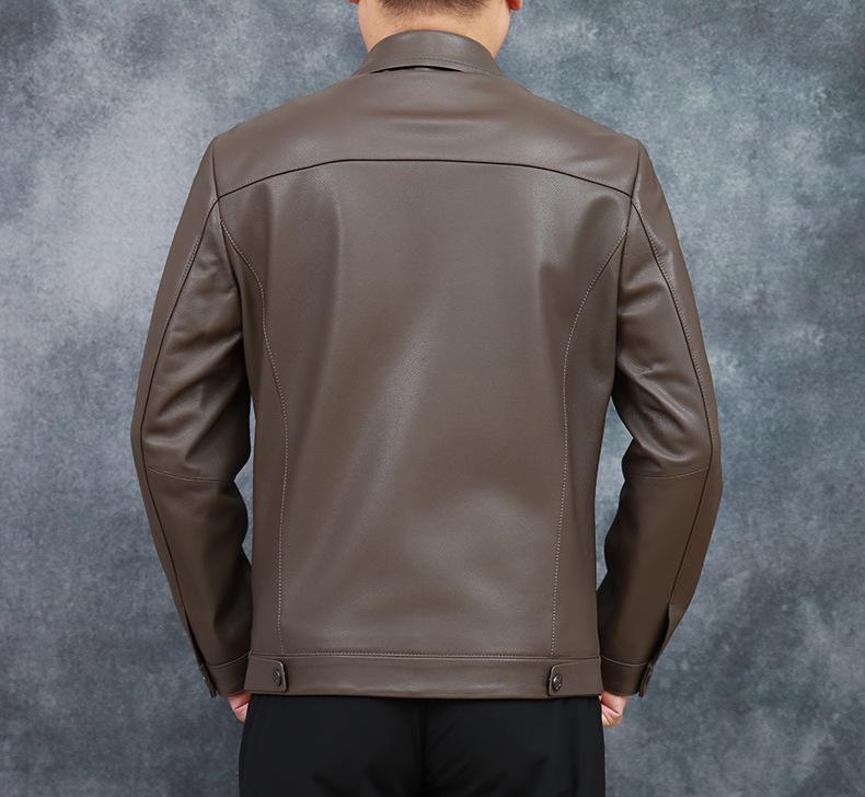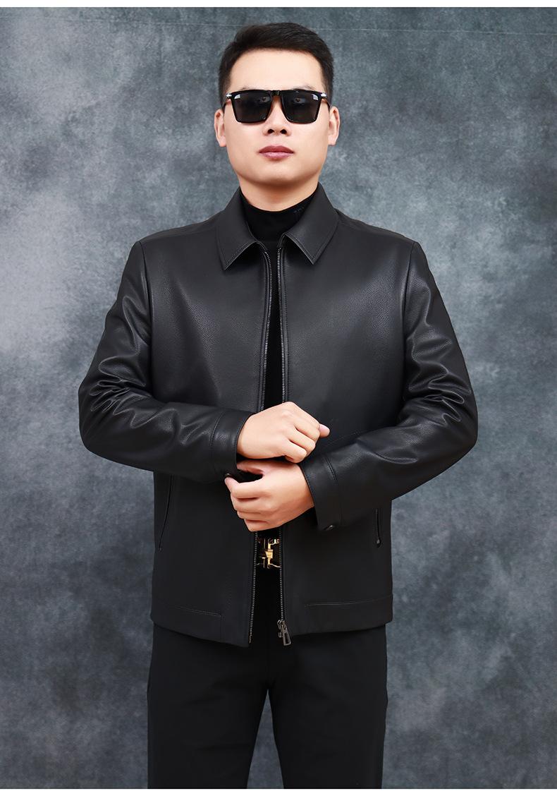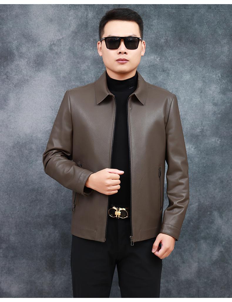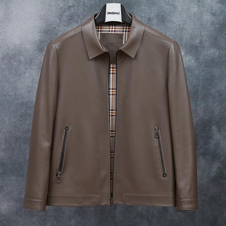 Chaqueta de Cuero Genuino Nuevo Haining para Hombre de Napa de Primera Capa con Solapa, Chaqueta de Cuero Ajustada de Negocios, Chaqueta Casual de Primavera y Otoño