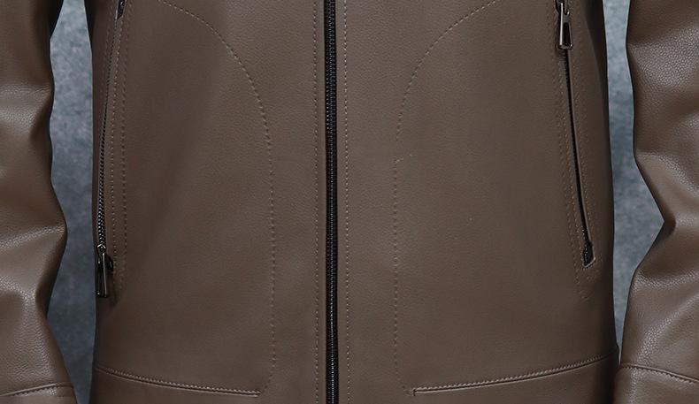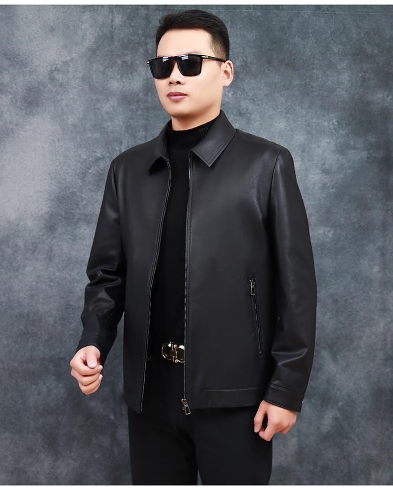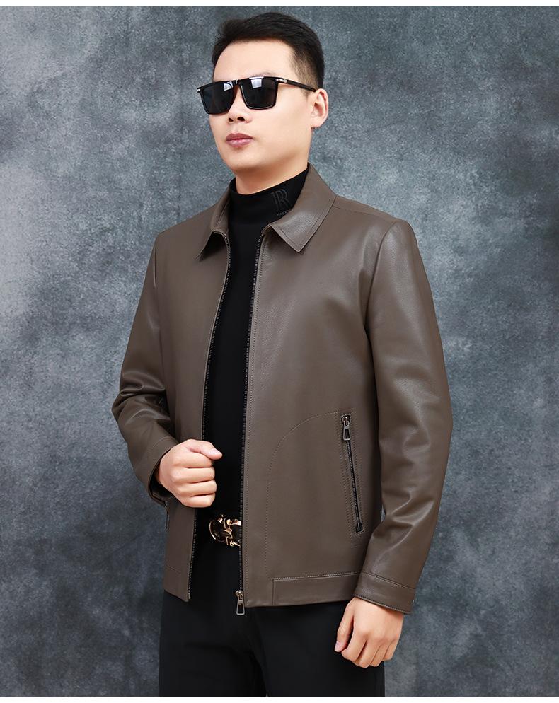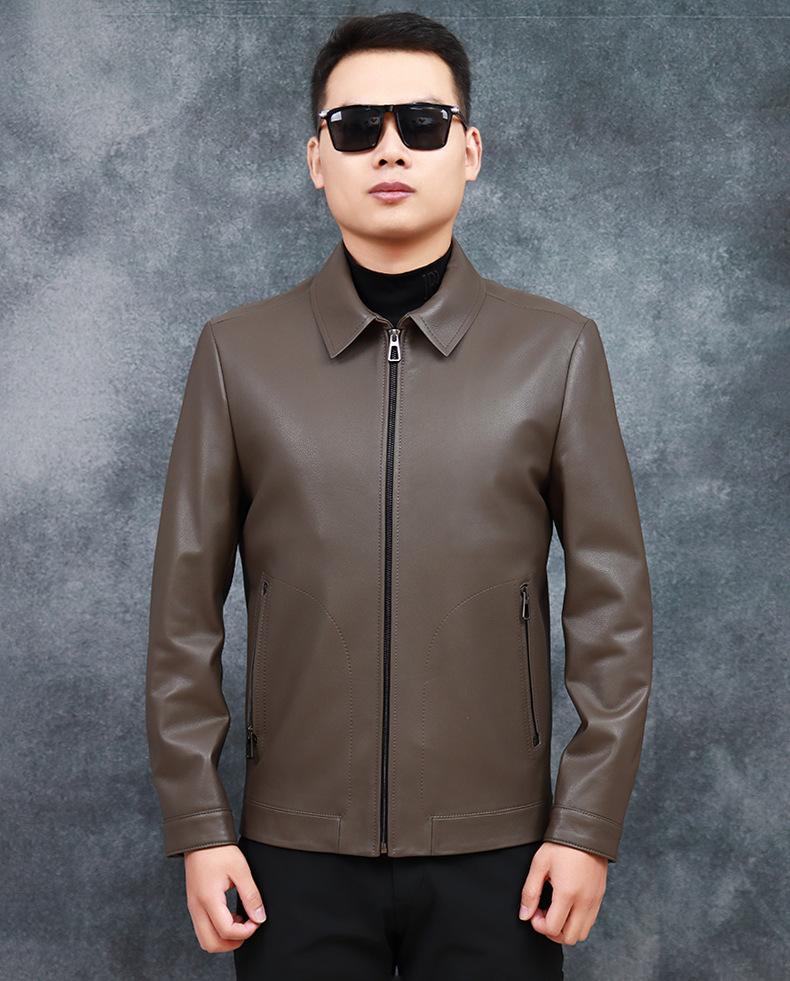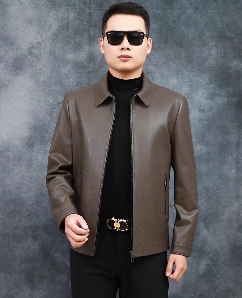 Chaqueta de Cuero Genuino Nuevo Haining para Hombre de Napa de Primera Capa con Solapa, Chaqueta de Cuero Ajustada de Negocios, Chaqueta Casual de Primavera y Otoño