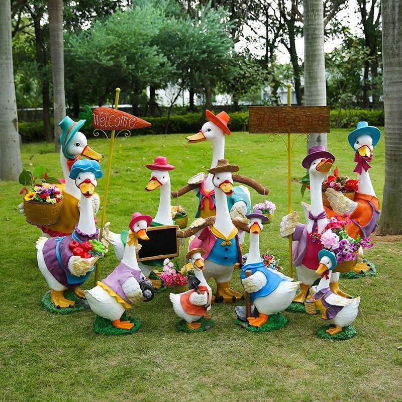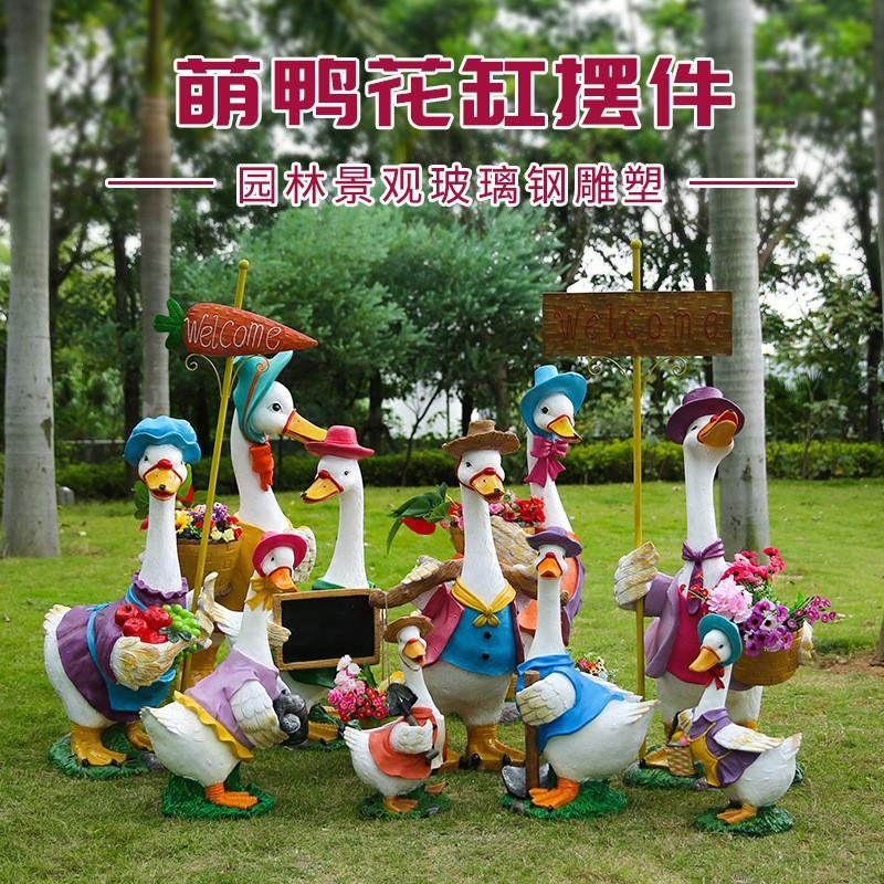 Escultura de pato de dibujos animados para jardín al aire libre, patio, césped, animal, maceta, plástico reforzado con fibra de vidrio, hermosa decoración paisajística Chen.
