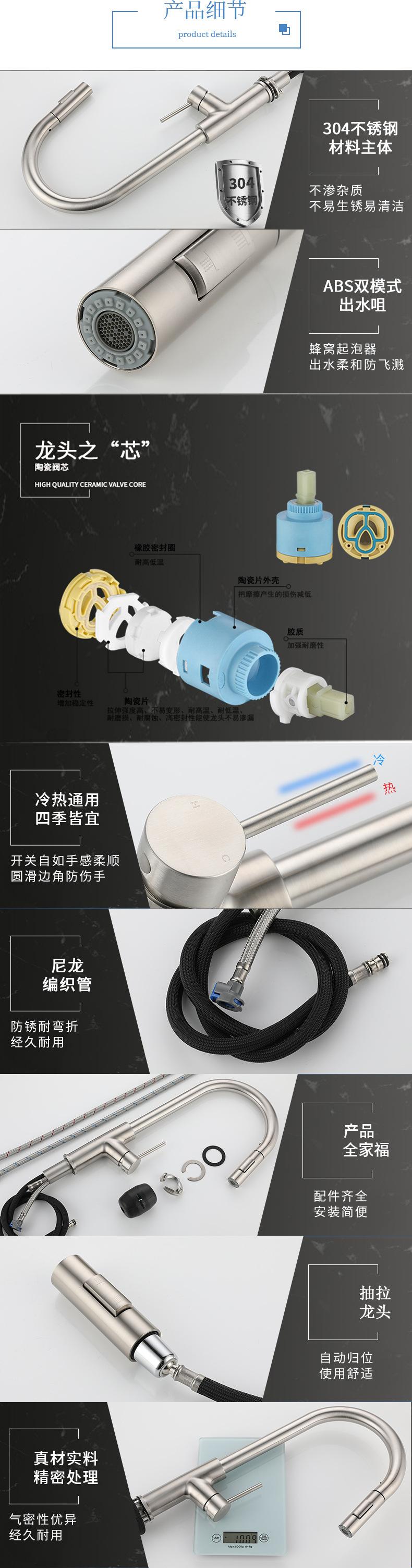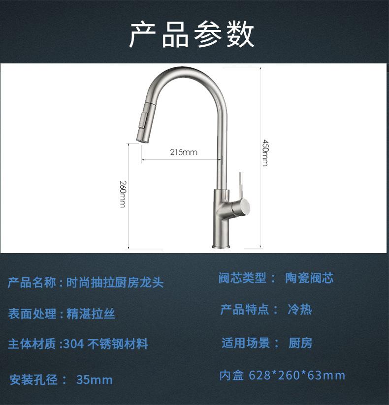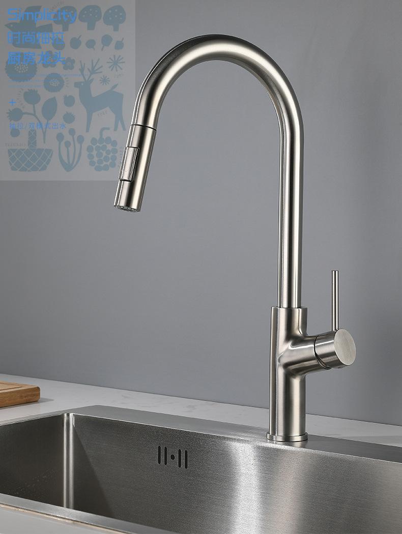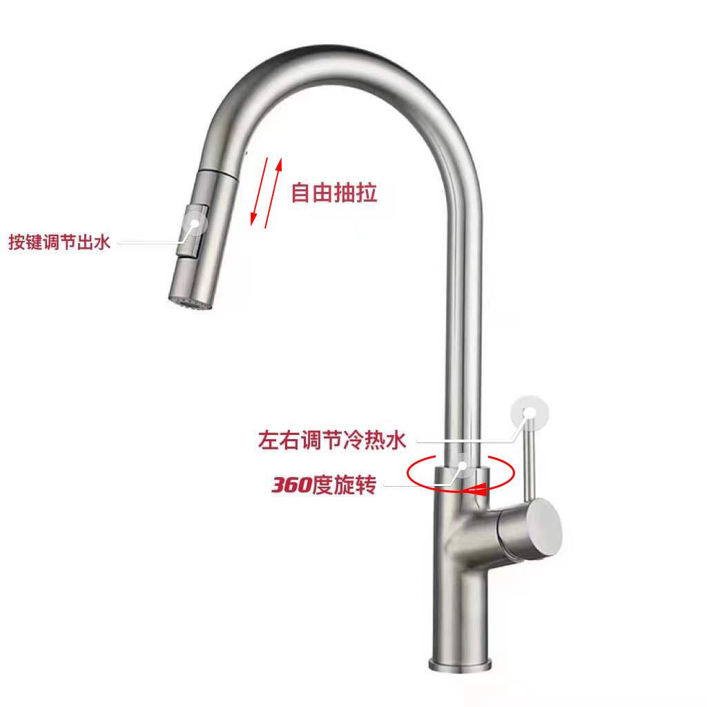 Grifo de cocina con dibujo de alambre transfronterizo, grifo para lavabo de agua caliente y fría, grifo giratorio SUS304