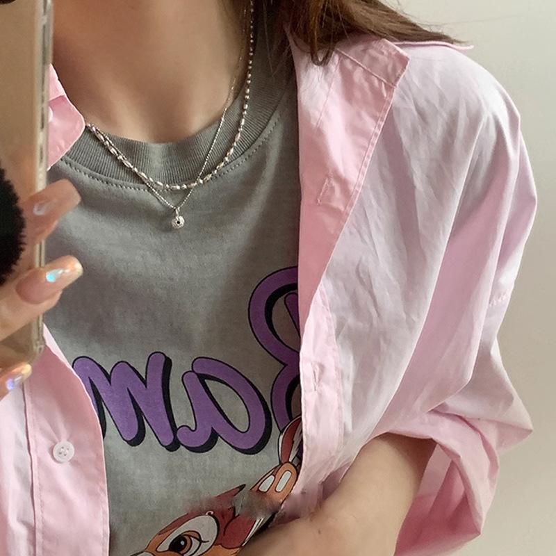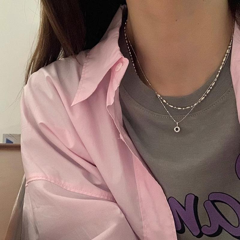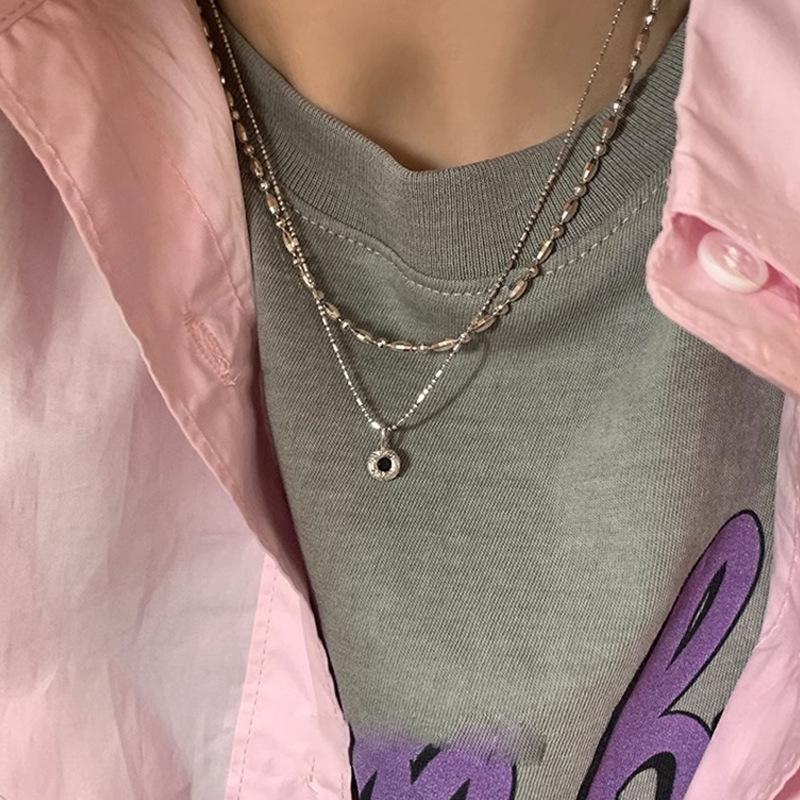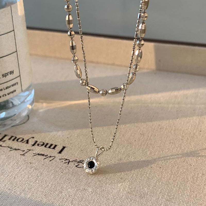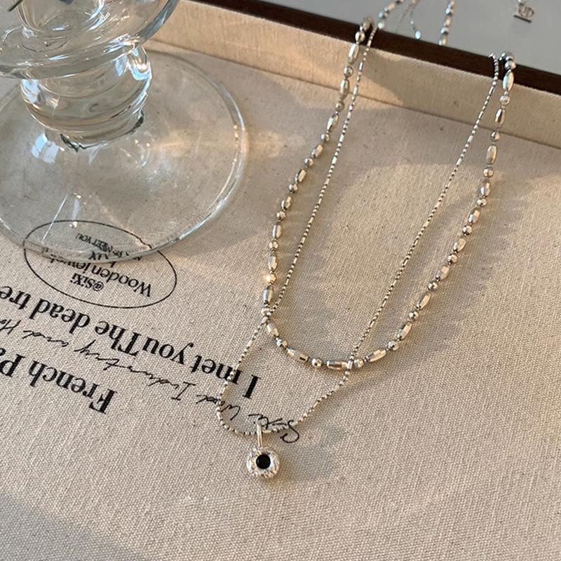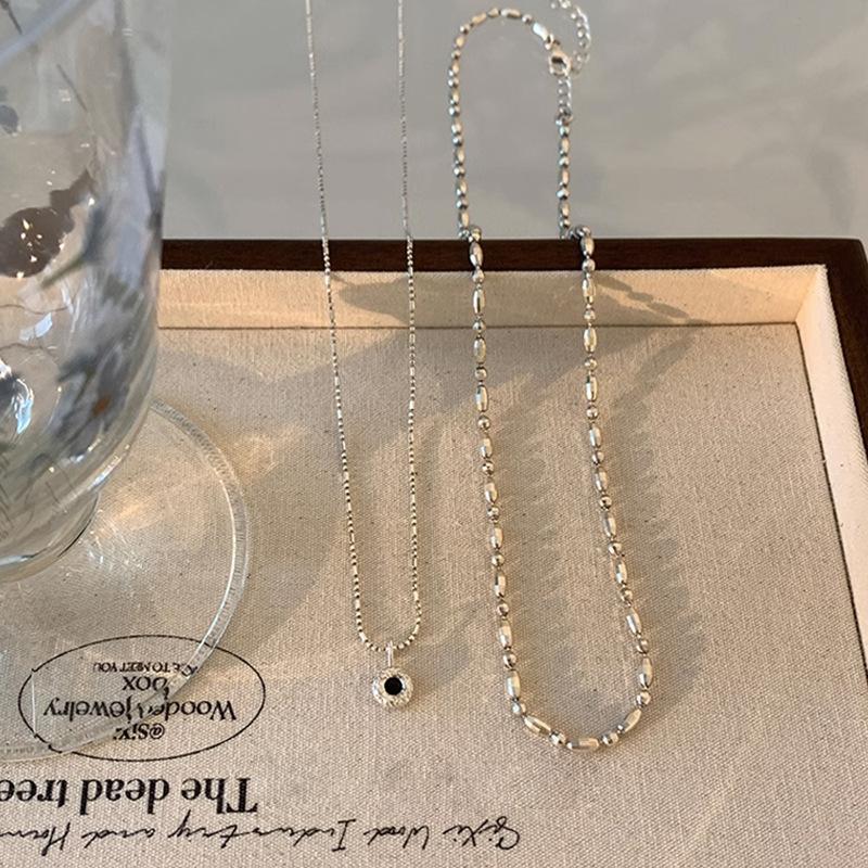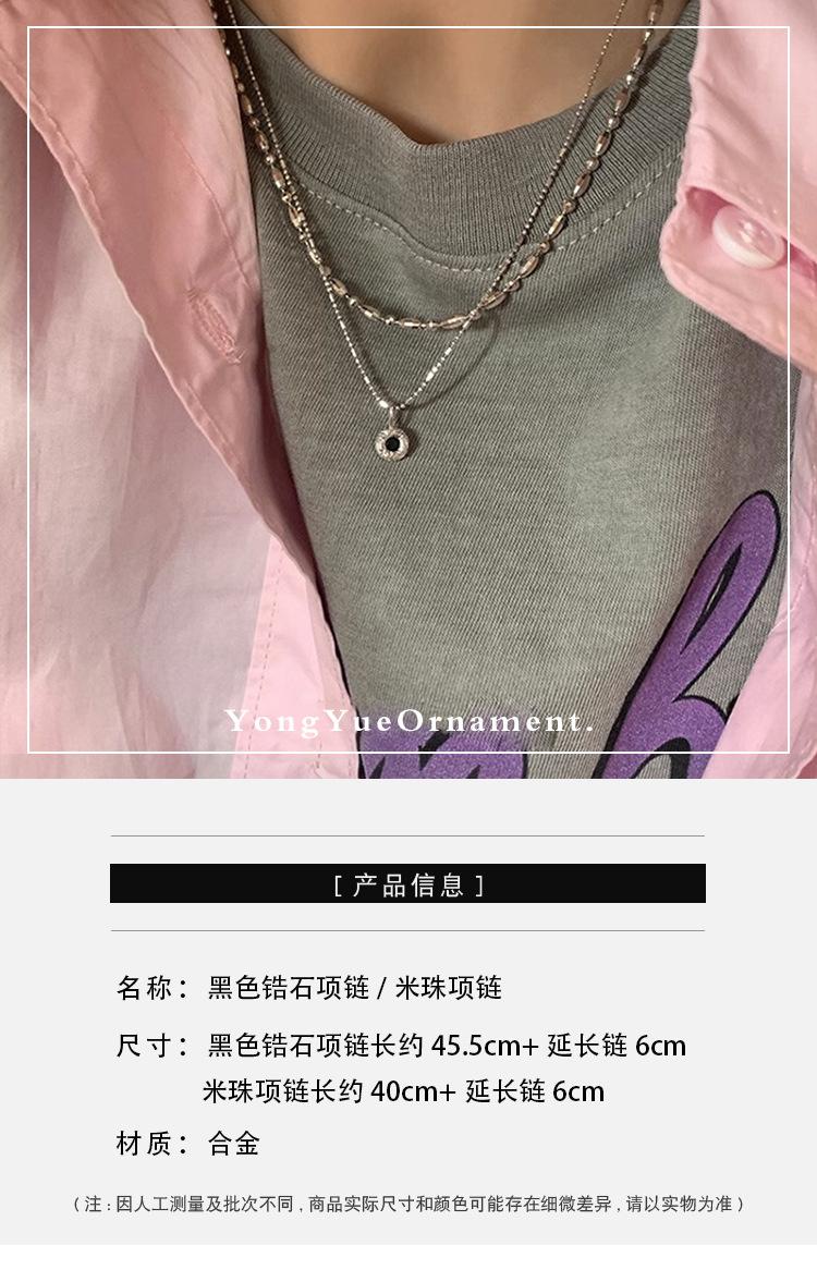 Black wrong stone necklace + Rice bead necklace, Black zircon necklace, Rice bead necklace