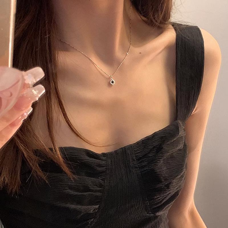 Collar de circonita negra plateada nuevo 2023 para mujer, estilo retro, sencillo, ligero, de lujo, con cadena de clavícula apilada.