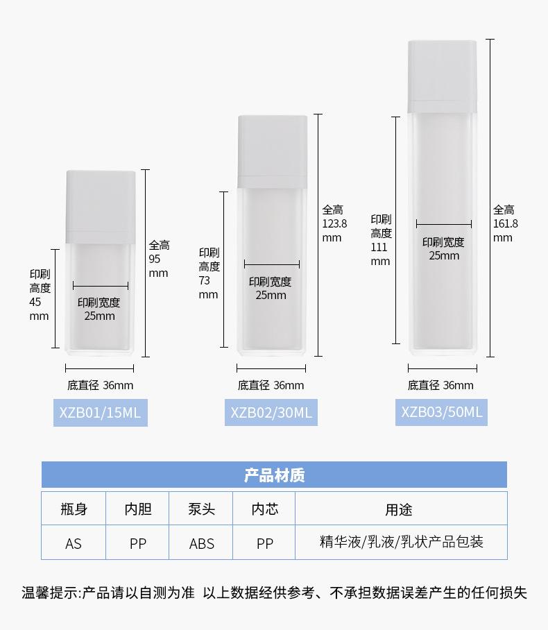Botella de plástico al vacío personalizada Xumin, botella de loción, botella de spray de 30 ml a 50 ml, botella de muestra hidratante de 15 ml