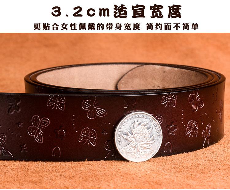Cinturón de mujer de piel auténtica de vaca pura, estilo étnico, retro, decorativo, moda coreana, venta directa de fábrica al por mayor.