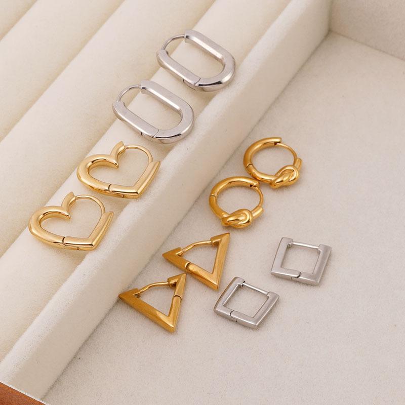 Pendientes geométricos de acero inoxidable de nicho europeo y americano, moda de acero de titanio, cuadrado, círculo de amor, hebilla de oreja, personalidad, tendencia para hombres y mujeres