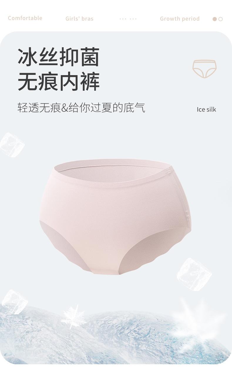 Ropa interior sin costuras para niñas 3A Entrepierna antibacteriana Seda de hielo Verano Delgada Ropa interior de tiro medio para niñas Elástica Cómoda Shorts tipo triángulo