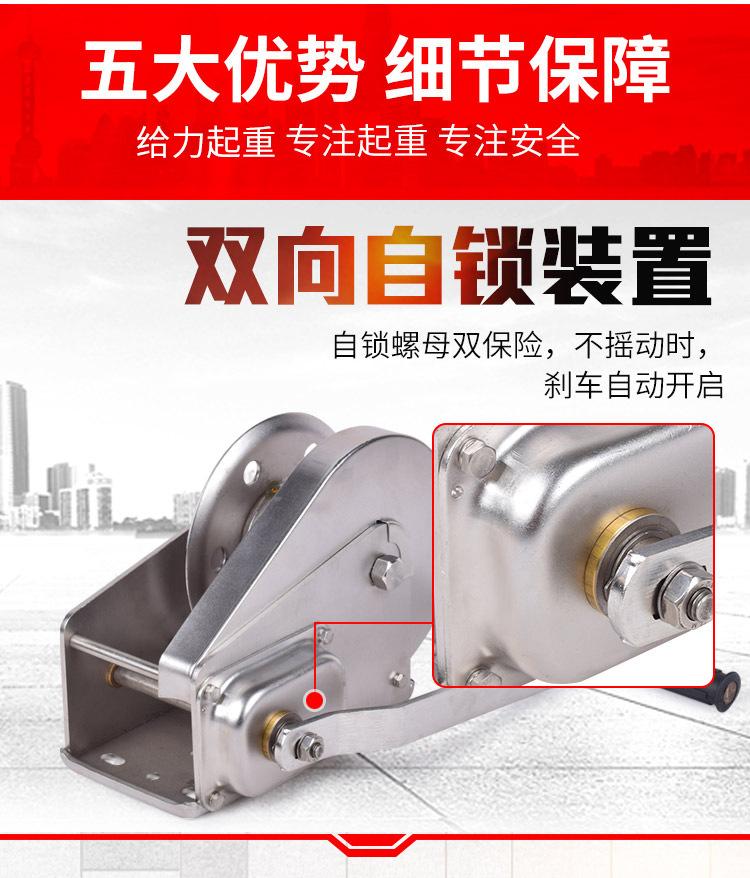 Cabrestante manual de acero inoxidable 304, cabrestante manual, cabrestante autoblocante bidireccional, protección del medio ambiente, grúa pequeña, disponible al por mayor.