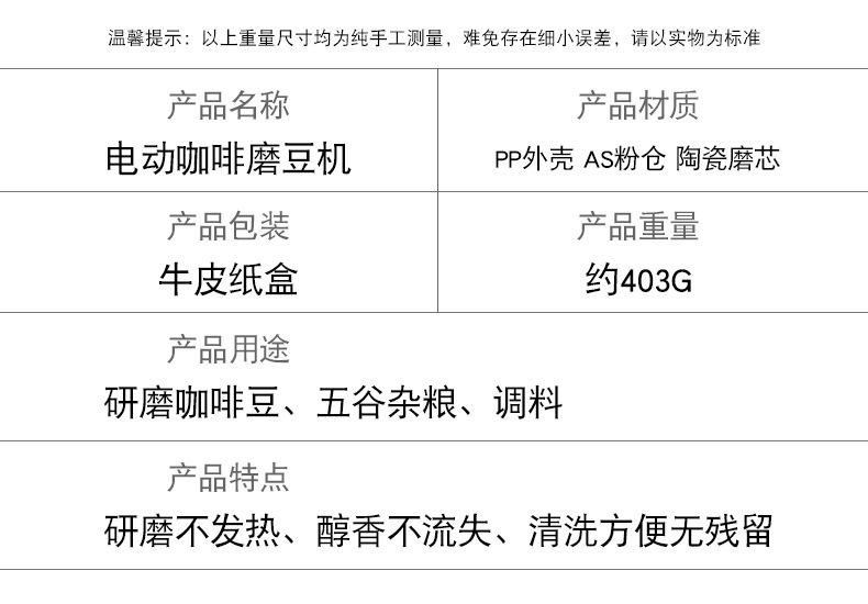 【capacidad】Capacidad del contenedor de frijoles: 30 g
