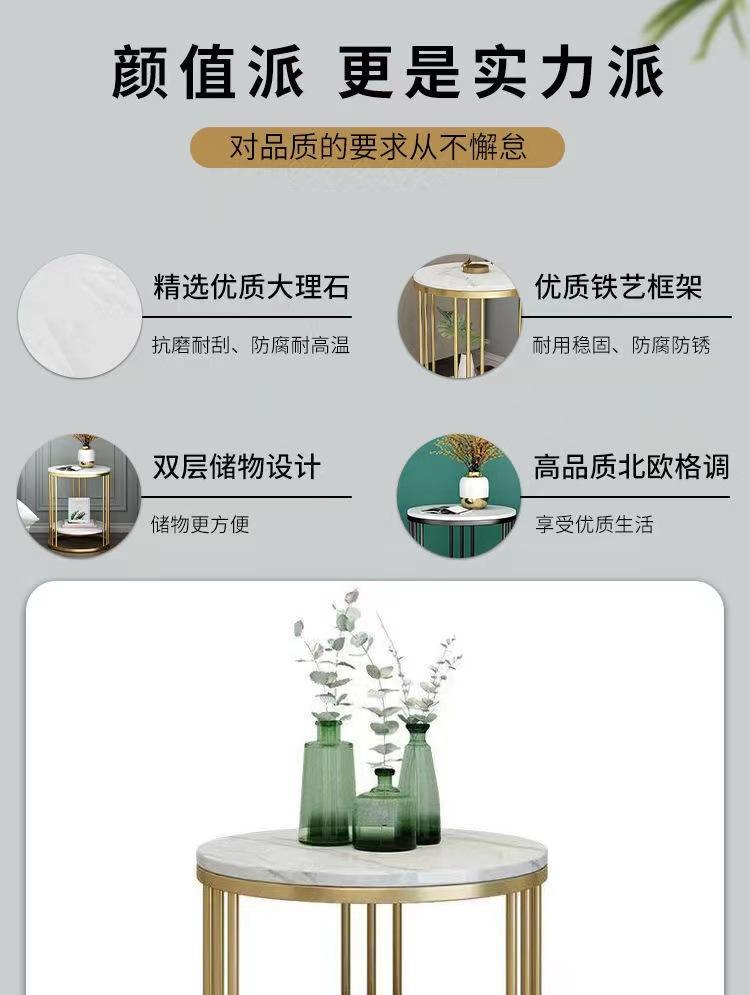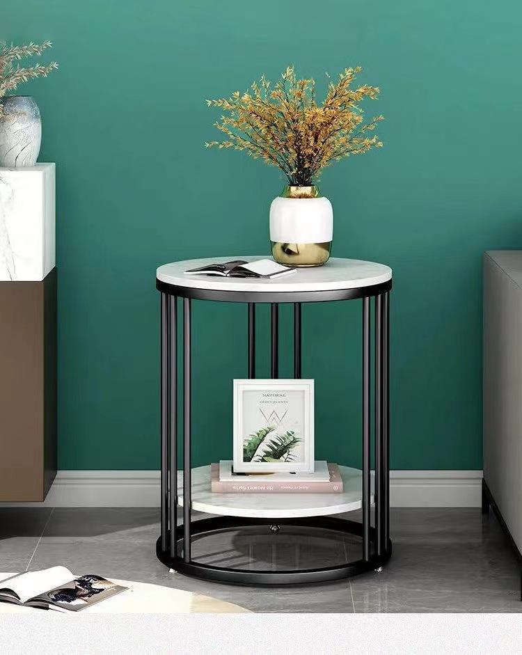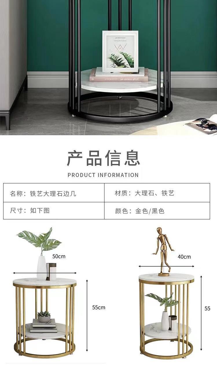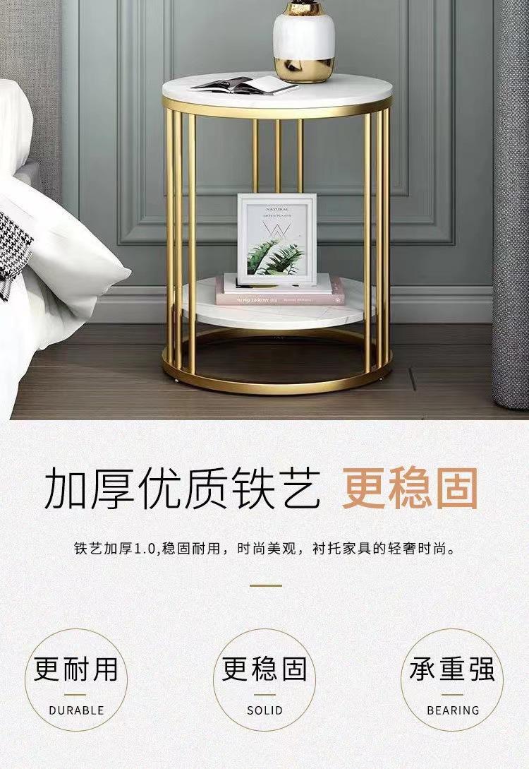 Mesa auxiliar de sofá de mármol para sala de estar nórdica, mesa de esquina de hierro, mesa de centro pequeña, mesa de noche redonda de lujo ligera, dormitorio simple