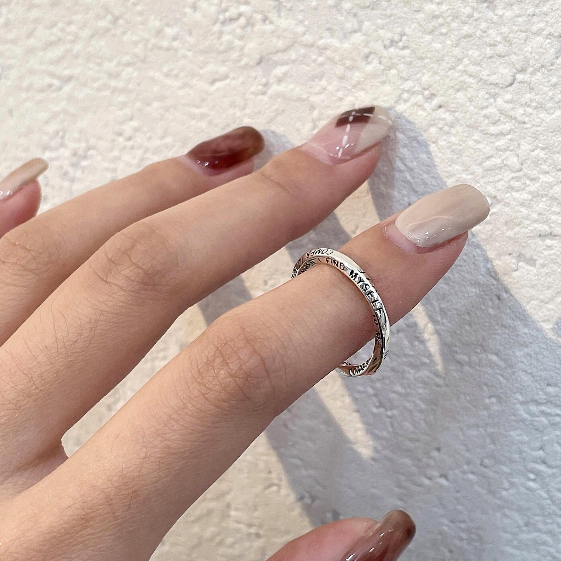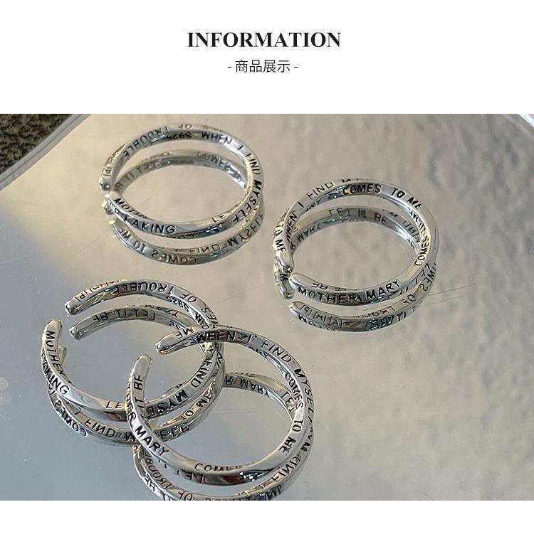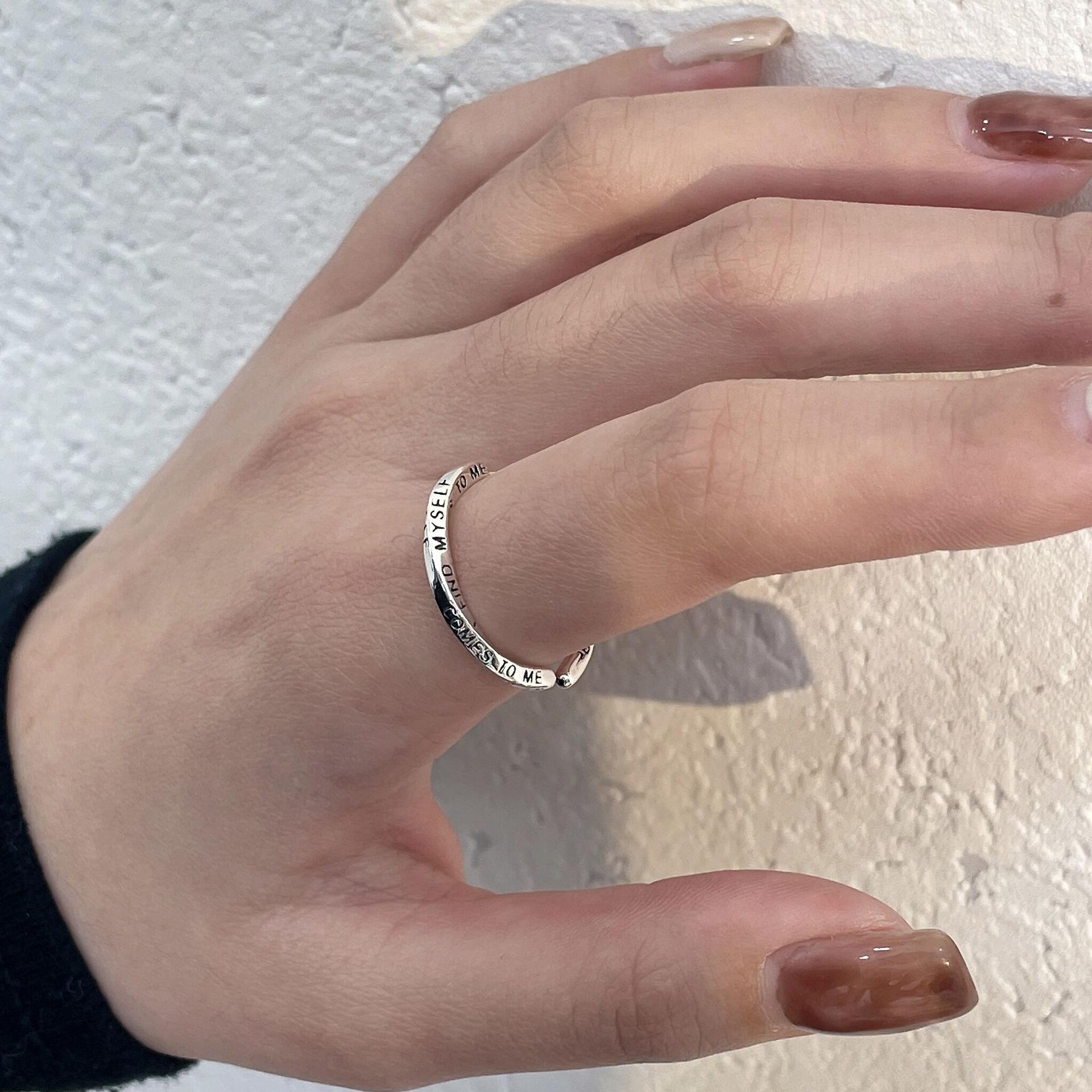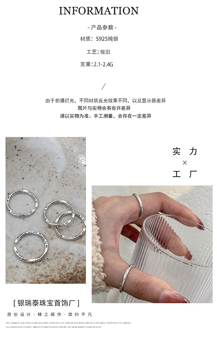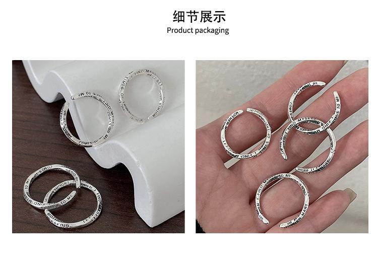 Anillo abierto Mobius de plata esterlina S925 Ruitai con grafiti inglés para mujer, anillo de lujo ligero de estilo coreano