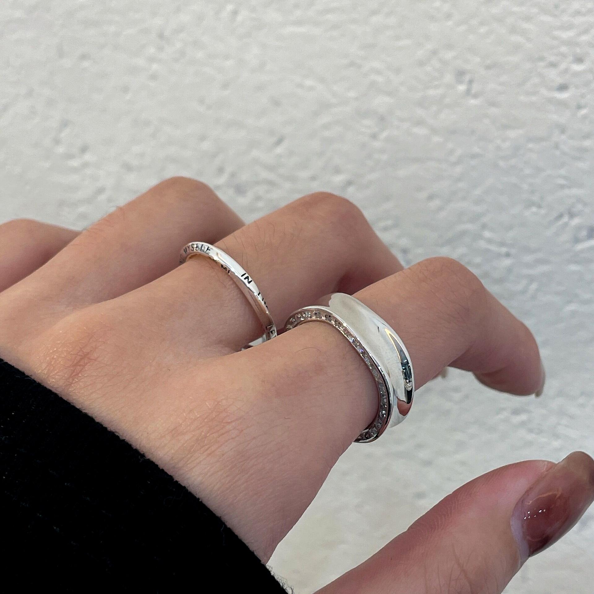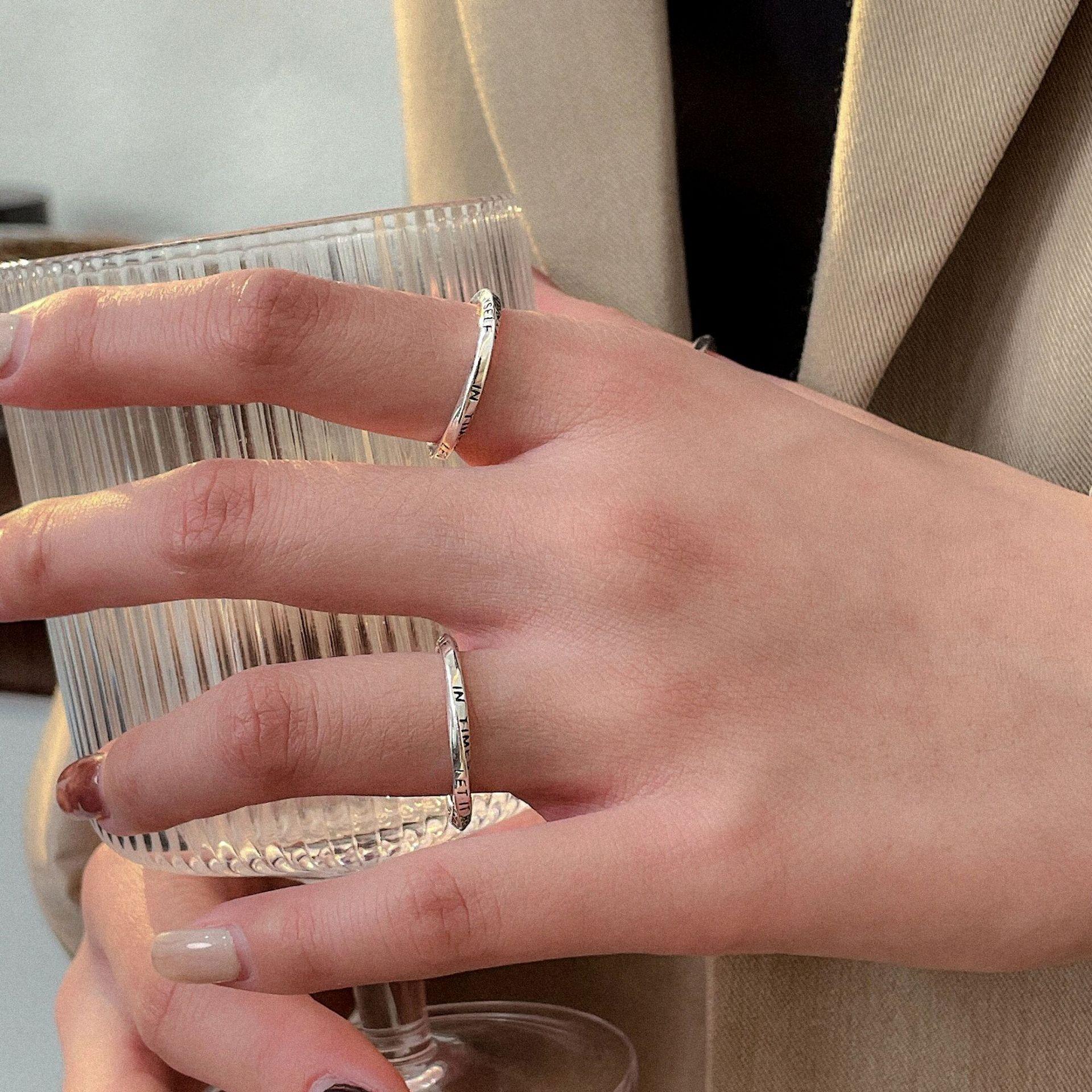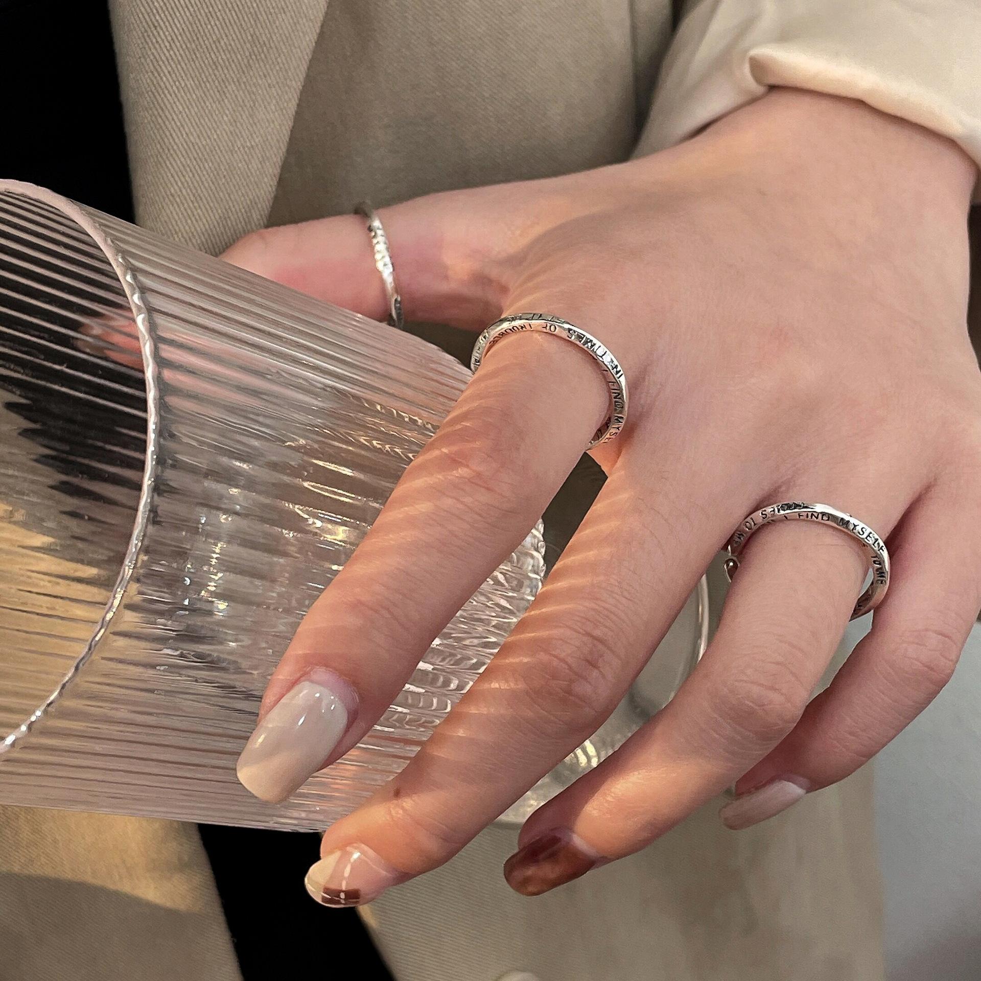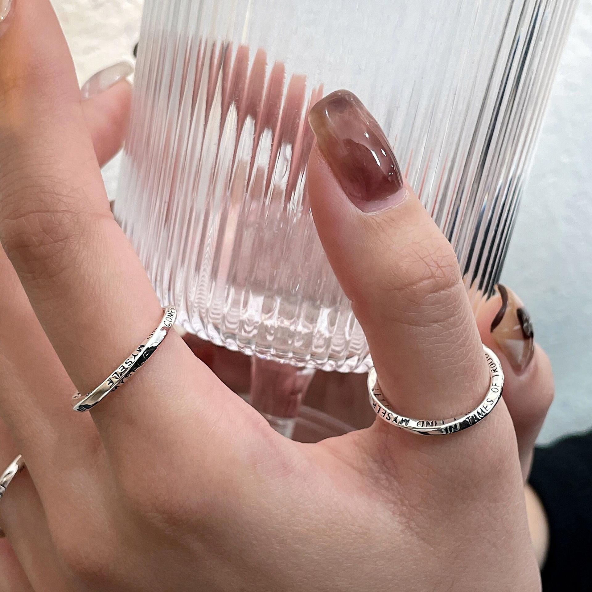 Anillo abierto Mobius de plata esterlina S925 Ruitai con grafiti inglés para mujer, anillo de lujo ligero de estilo coreano