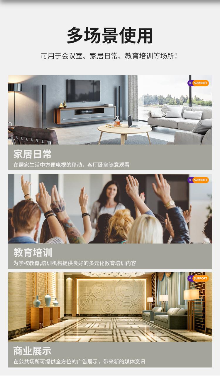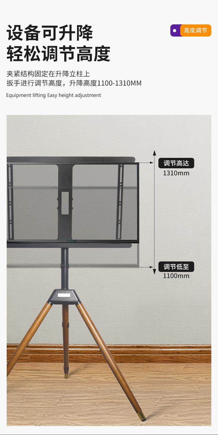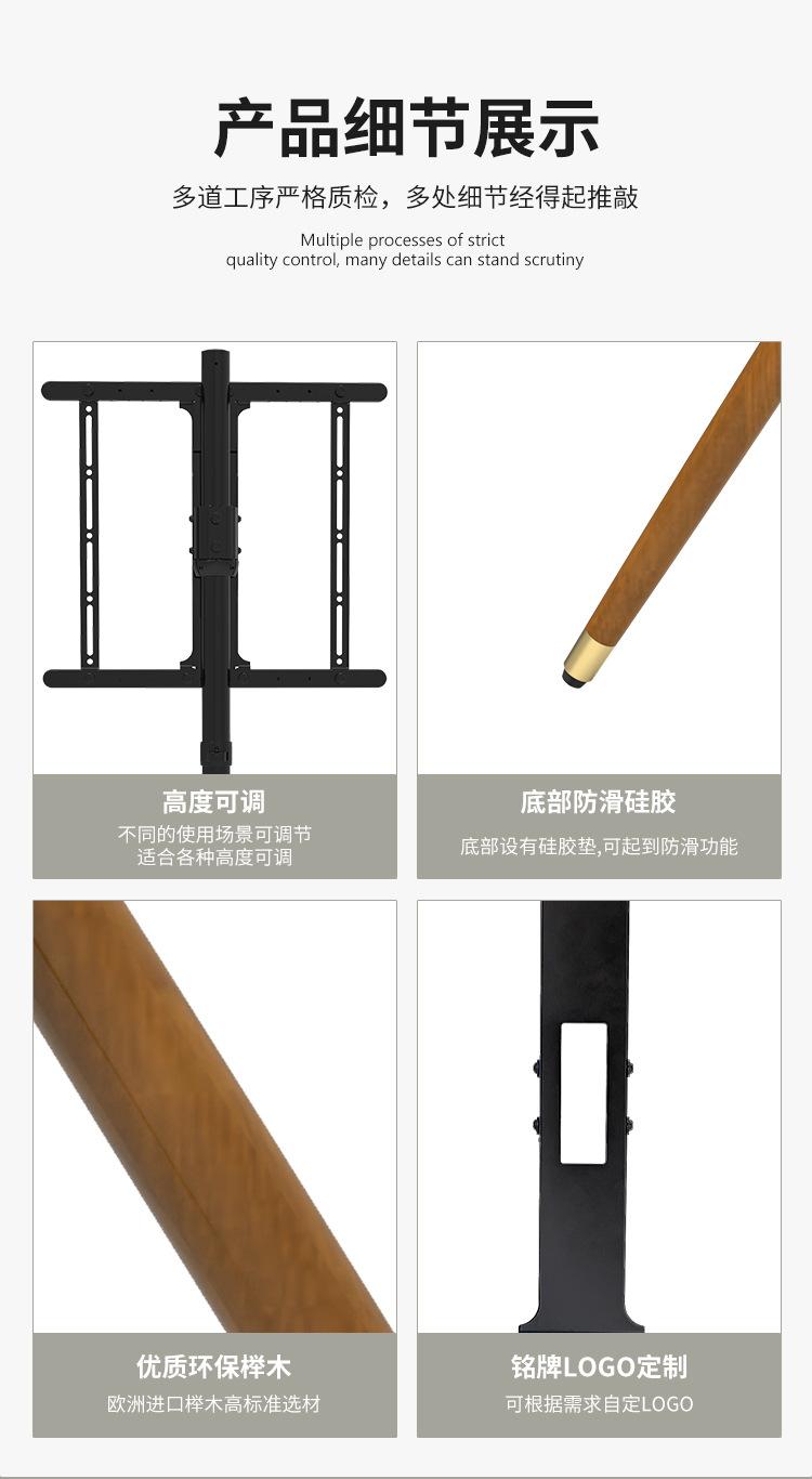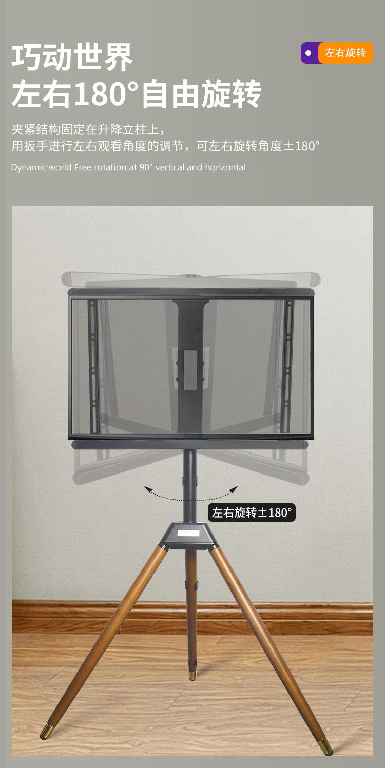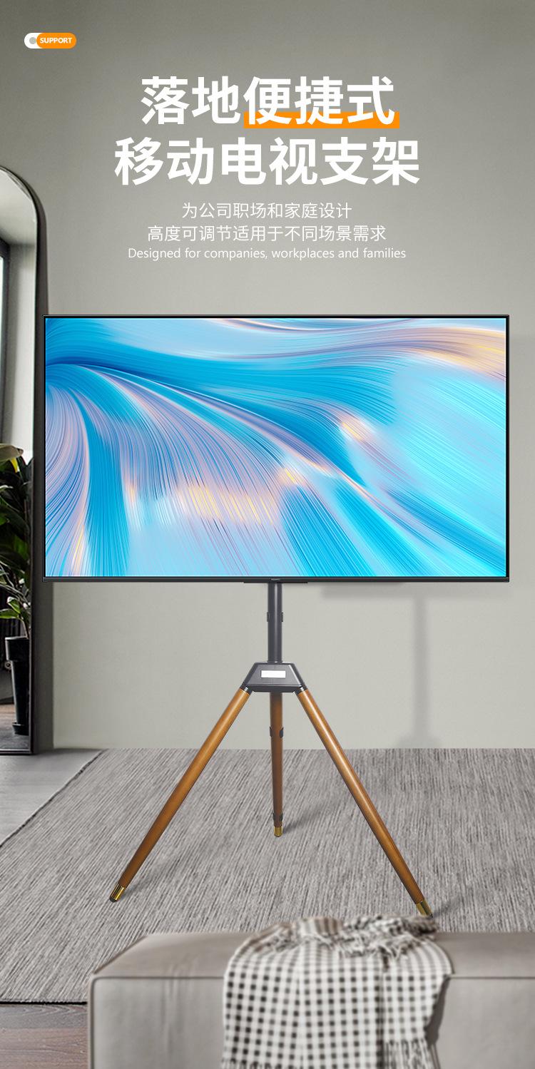 Soporte de TV giratorio móvil personalizado de fábrica, soporte de TV de madera maciza con elevación de piso, colgador de exhibición de 32 a 65 pulgadas