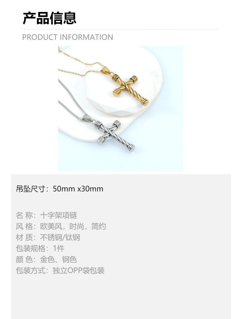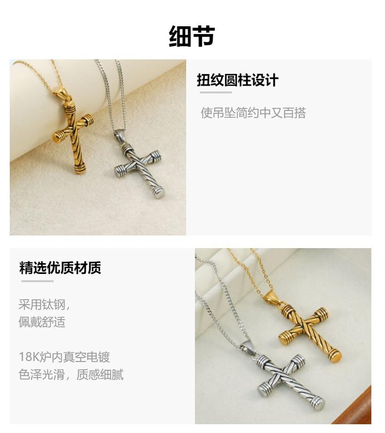 Collar de cruz retro europeo y americano, colgante de cruz cilíndrica de hip hop personalizado, accesorios de cadena de lana de moda para hombres.