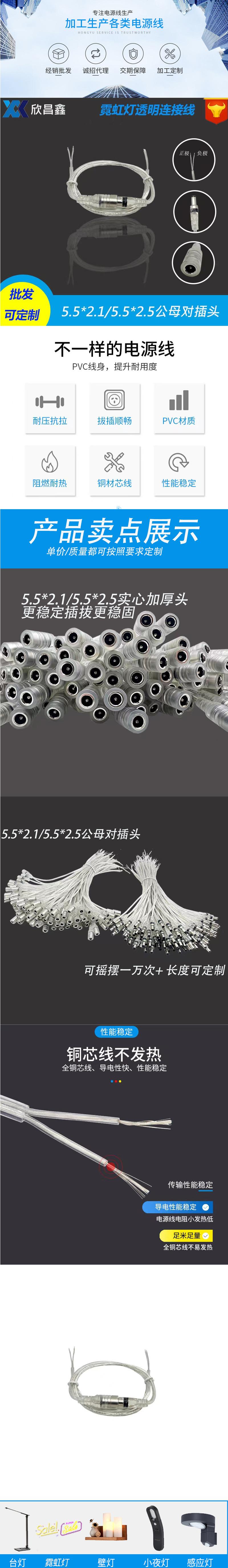 Cable de extensión de alimentación con conector hembra 5521, 5,5 x 2,1, luz de neón, transparente, para conexión de cables, macho y hembra.