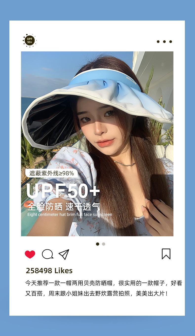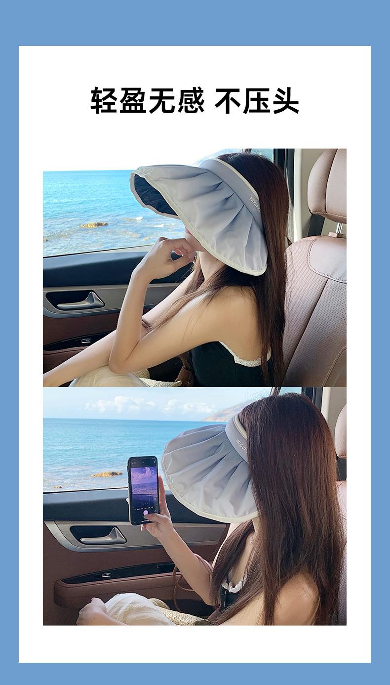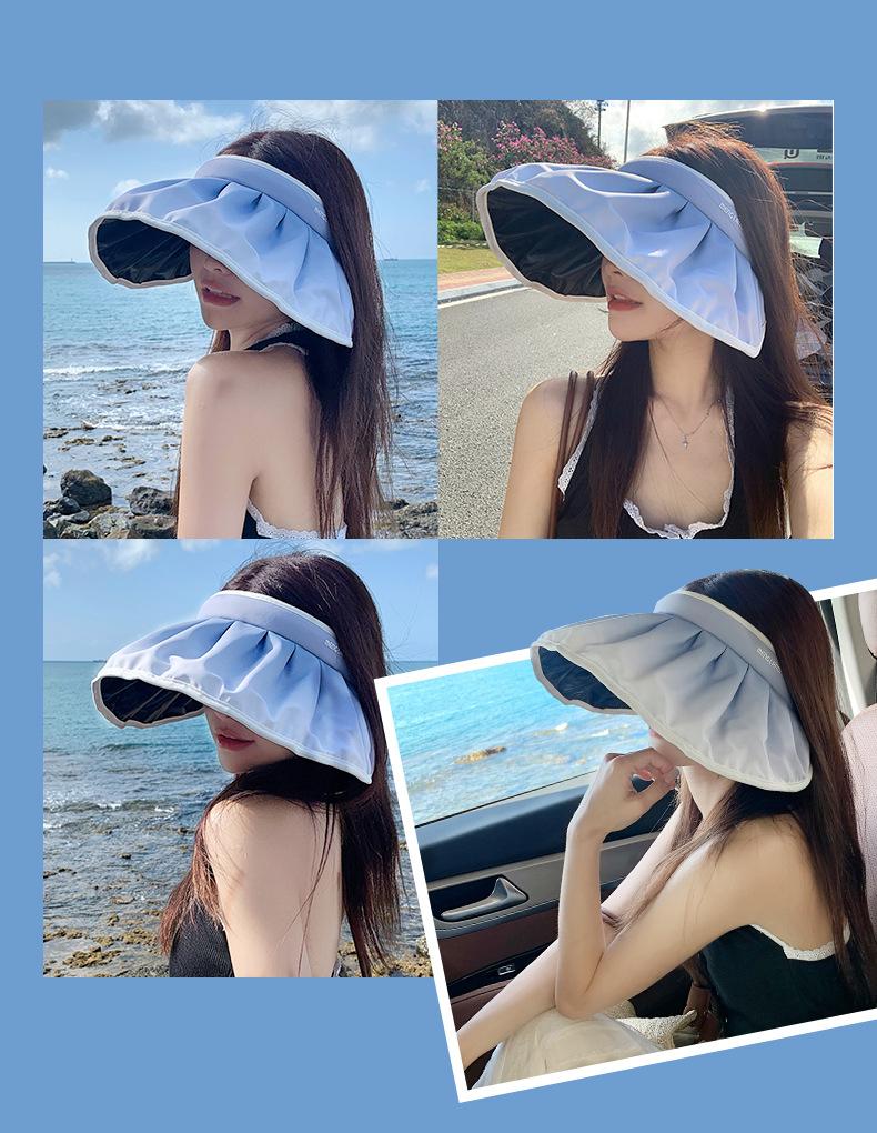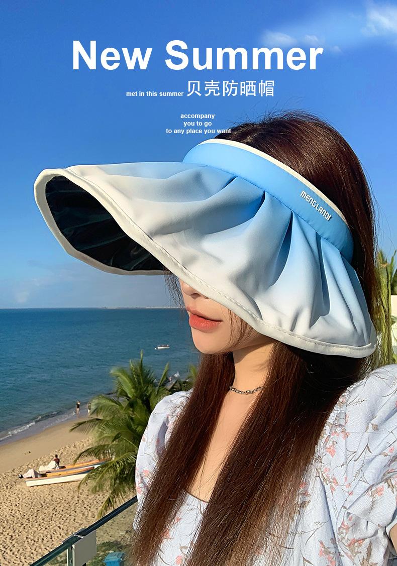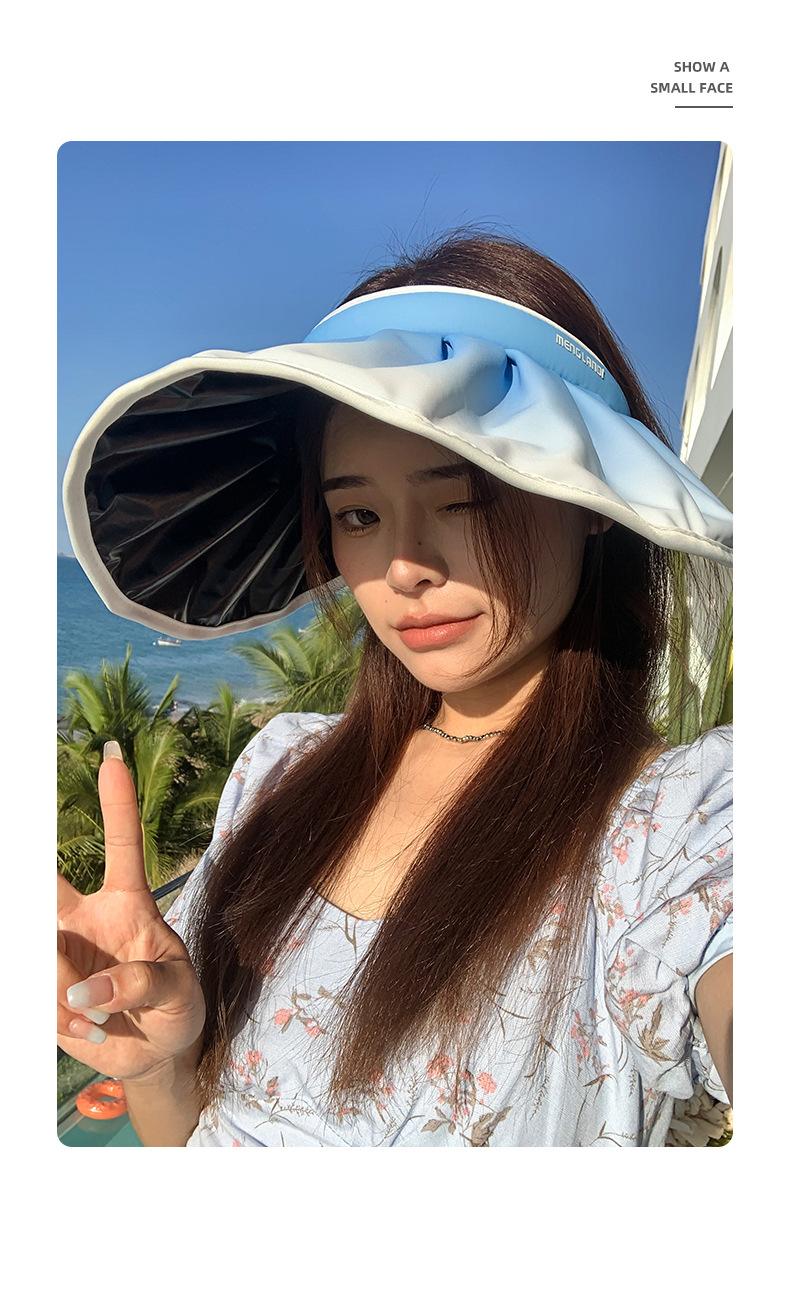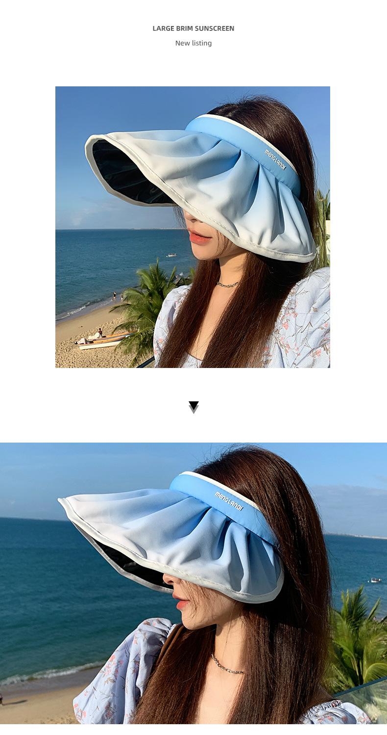 Sombrero para el Sol para Mujer Verano Anti-UV Vinilo Copa Vacía Sombrero de Ala Ancha Playa Viaje Sombrilla Protector Solar Degradado Sombrero para el Sol