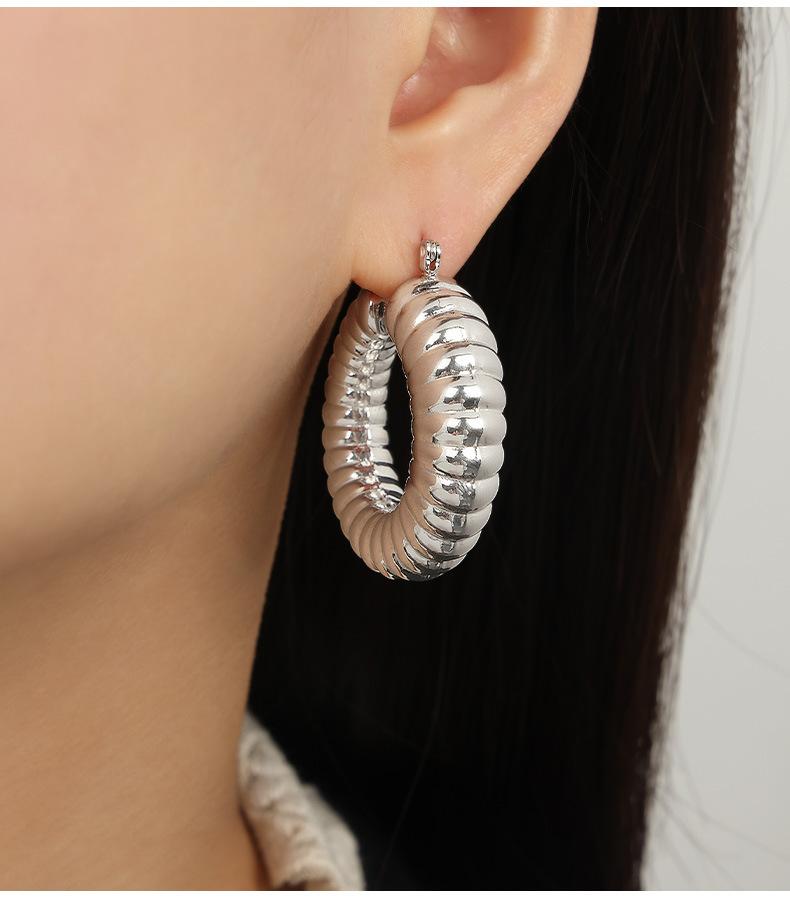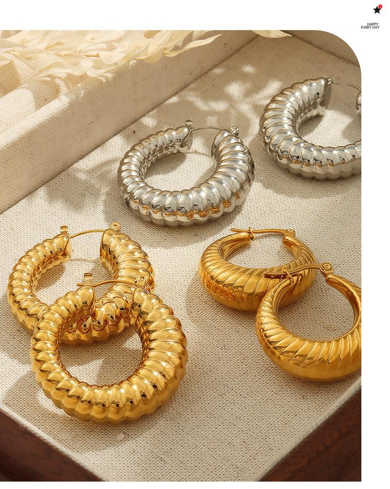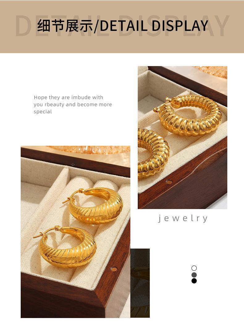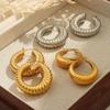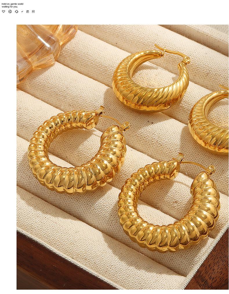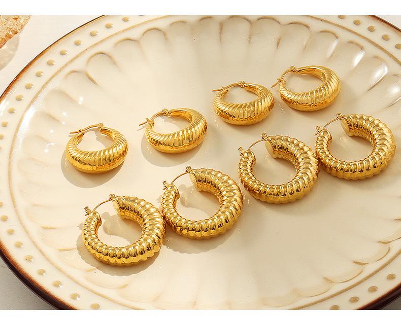 Nuevos aretes redondos retorcidos de acero de titanio de moda europea y americana para mujer, alto sentido del diseño, no se decoloran, joyería de hebilla para la oreja de 18k